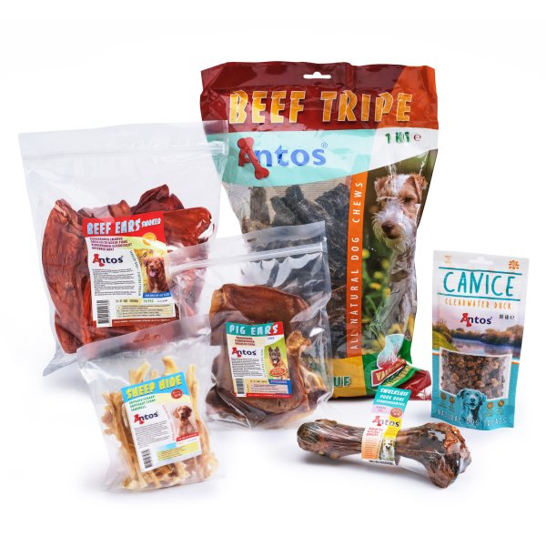 L’animale sarà contentissimo di questi prodotti da masticare. Un prodotto da masticare deve avere un buonissimo sapore e far sì che il tuo amico a quattro zampe se lo gusti fino in fondo: come ricompensa, come parte dell’addestramento o semplicemente come spuntino responsabile. Dovrebbero essere prelibatezze così gustose da essere accolte con grandi scodinzolate. Fare felici cani e gatti e trasmettere anche piacere quando vengono loro offerti. Da Zaltbommel, il nostro ricco e vasto assortimento di prodotti per la masticazione viaggia raggiungendo tutte le destinazioni del mondo. Antos - rivenditore all’ingrosso, importatore ed esportatore - specialista del settore dal 1989.