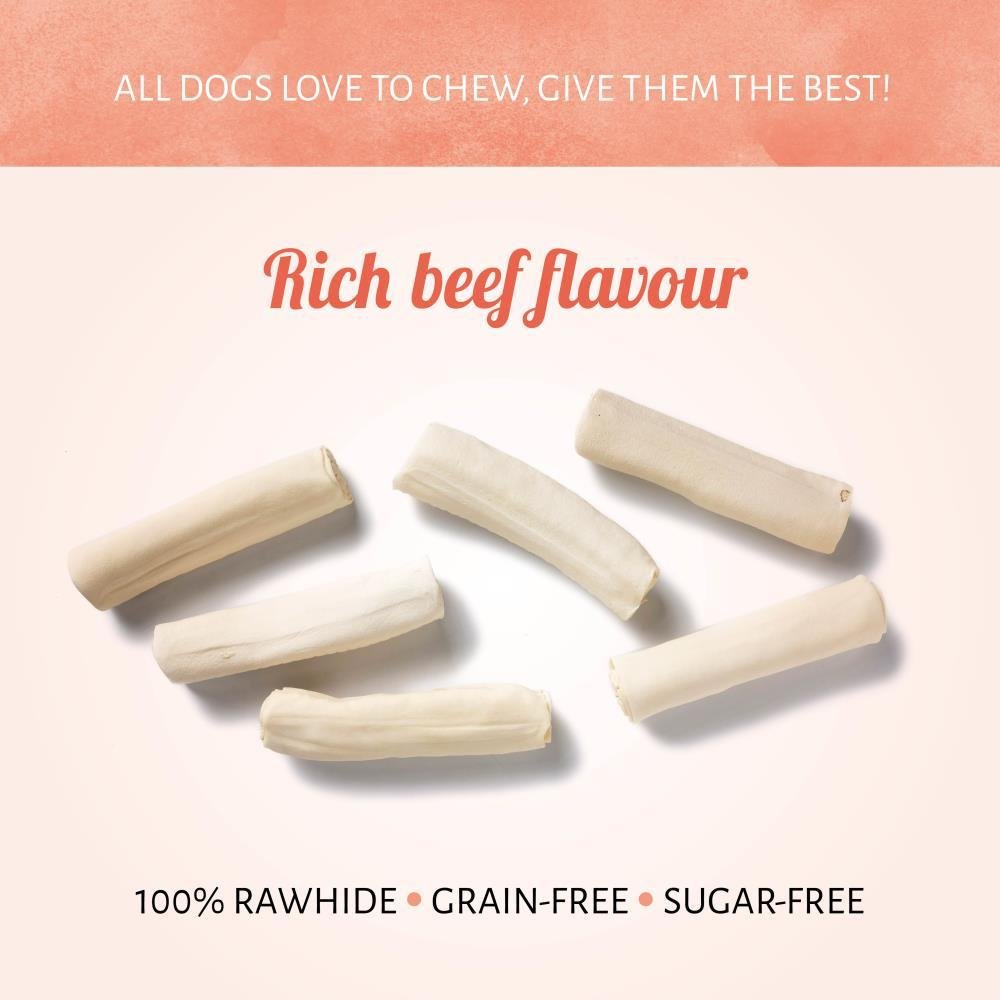 Ogni morso ha un ricco sapore al gusto di manzo; i nostri articoli per la masticazione per cani Roll Bianco diventeranno i preferiti del tuo cane. Questo articolo completamente naturale in pelle cruda è appagante e assolutamente sicuro. È stato ideato per durare a lungo e pensato per quei cani che hanno bisogno di trascorrere molto tempo a masticare.