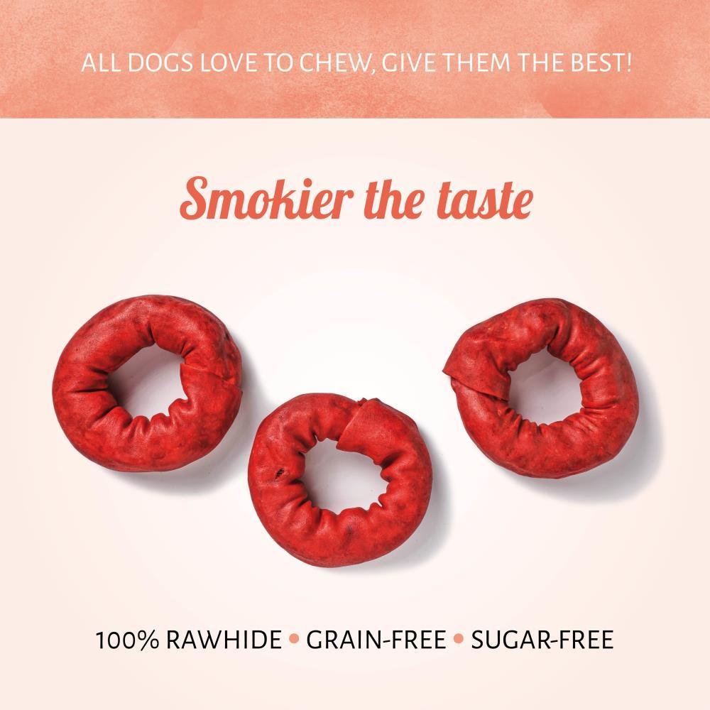 I nostri articoli per la masticazione per cani Ring Barbecue renderanno il momento dello spuntino ancora più emozionante. Realizzati con un unico semplice ingrediente, questi articoli i naturalmente affumicati terranno impegnato a lungo il tuo cane. Guardalo impazzire di gioia proprio grazie a questi gustosi bocconi di colore scuro.