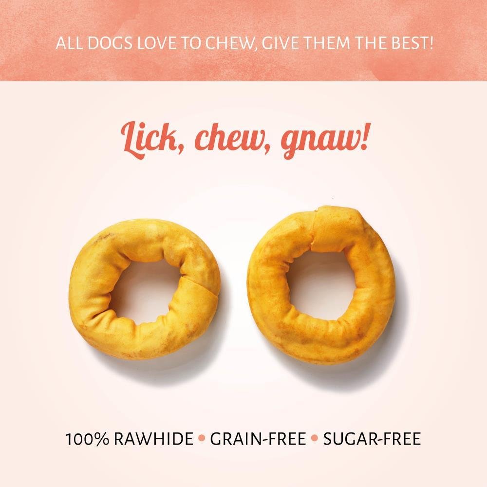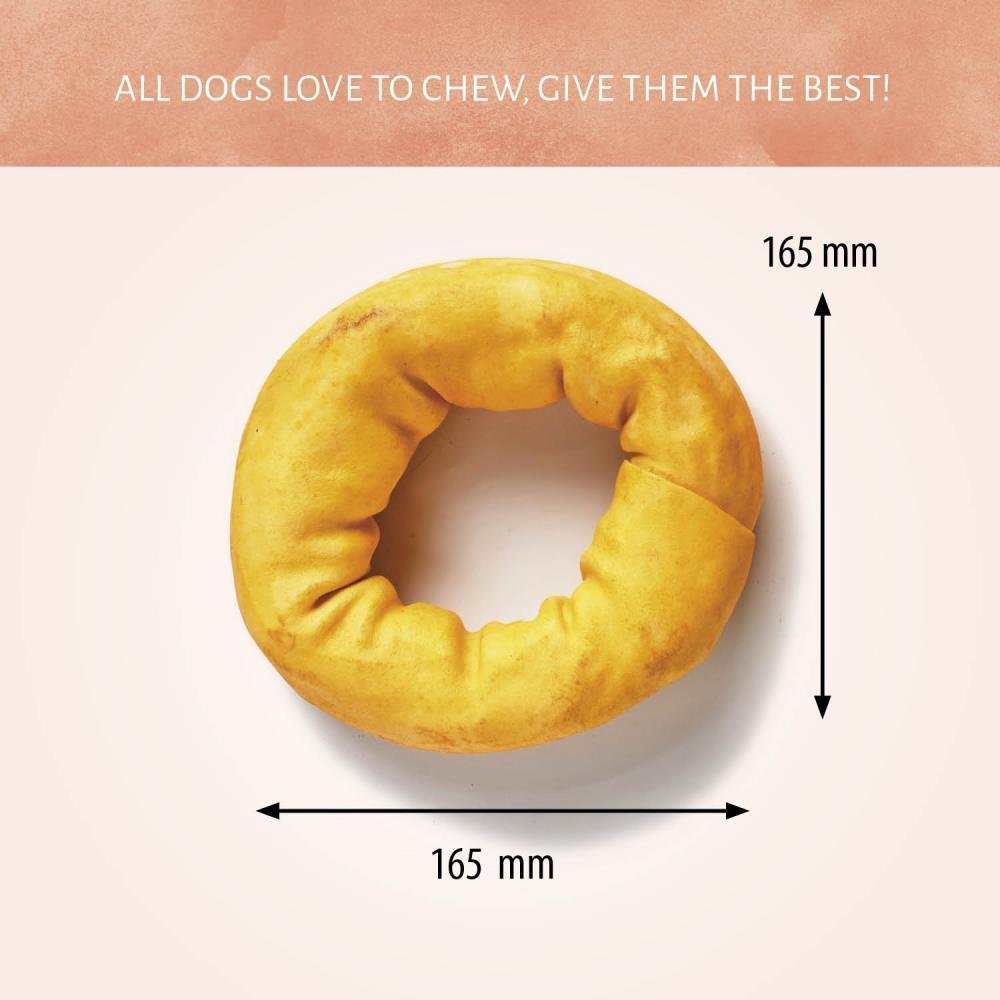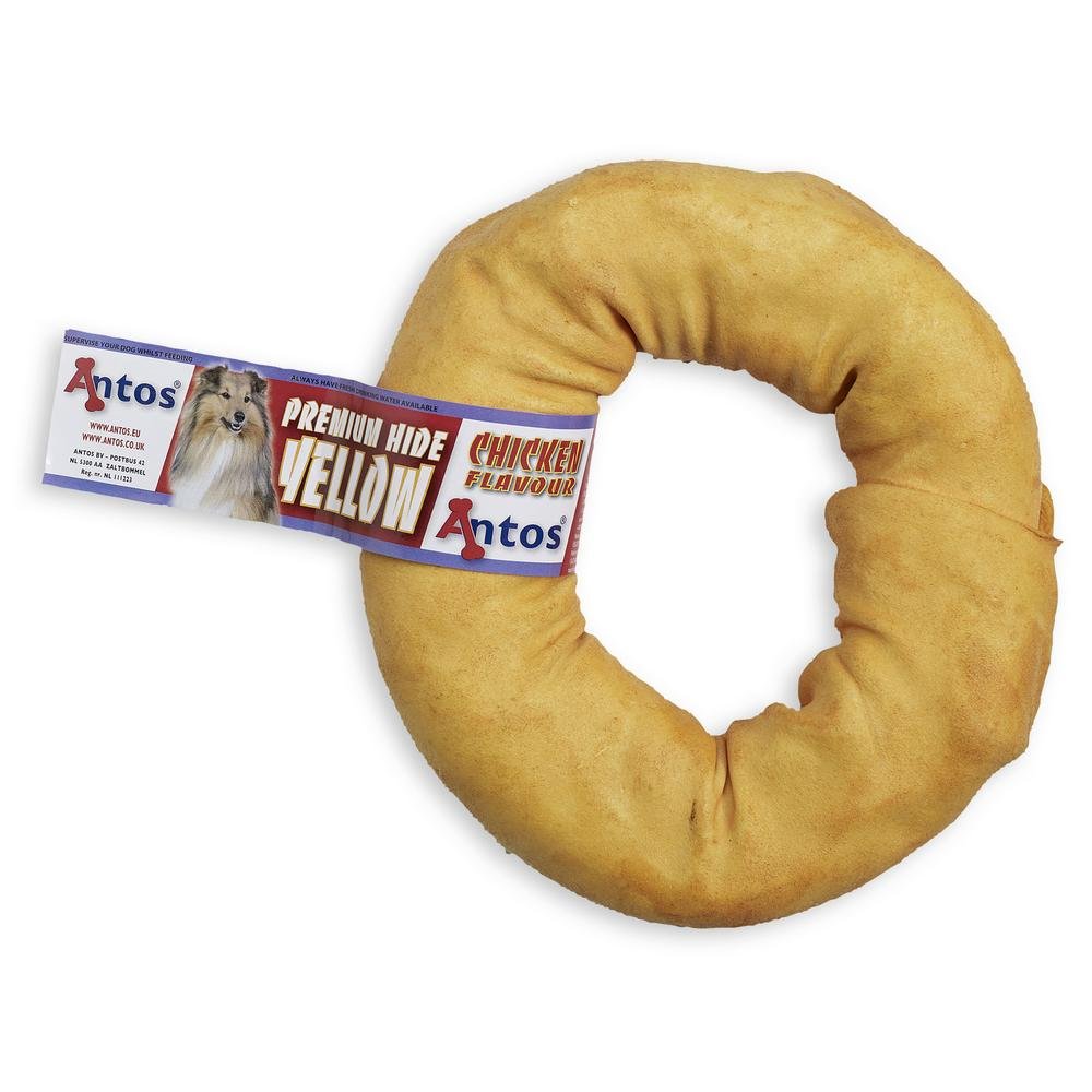 Gli articoli per la masticazione per cani Ring Giallo manterranno il tuo cane impegnato sia mentalmente, sia fisicamente. Questo articolo per la masticazione crudo è commestibile e digeribile, e ha un gusto cui è difficile resistere. La sua forma ad anello regalerà al tuo cane ore felici di leccate, di masticazione e di rosicchiamento.
