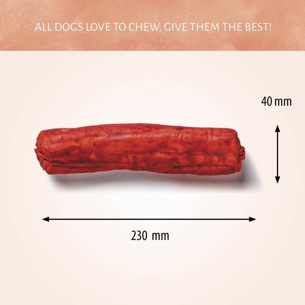 Consigliato come snack per cani. Vizialo responsabilmente: scegli gli snack, come consigliato, in base alla taglia del tuo cane. Per la sicurezza dei tuoi animali, controlla il tuo cane mentre mastica o mangia lo snack. Tieni acqua fresca sempre a portata di mano. Tenere in luogo fresco, pulito e asciutto. Questo prodotto è da considerarsi come snack e non bisogna considerarlo come un pasto completo. Porlo su una superficie facile da pulire.