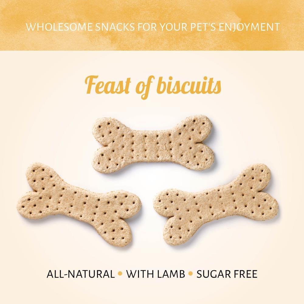 Bravo ragazzo, ti sei meritato un bel bocconcino! Per aggiungere divertimento e per variare un po' dai al tuo cane i nostri biscotti d'agnello, deliziosi biscotti al gusto di agnello che conservano bene il proprio sapore a ogni morso. Il tuo cane si godrà un bel banchetto a base di biscotti!