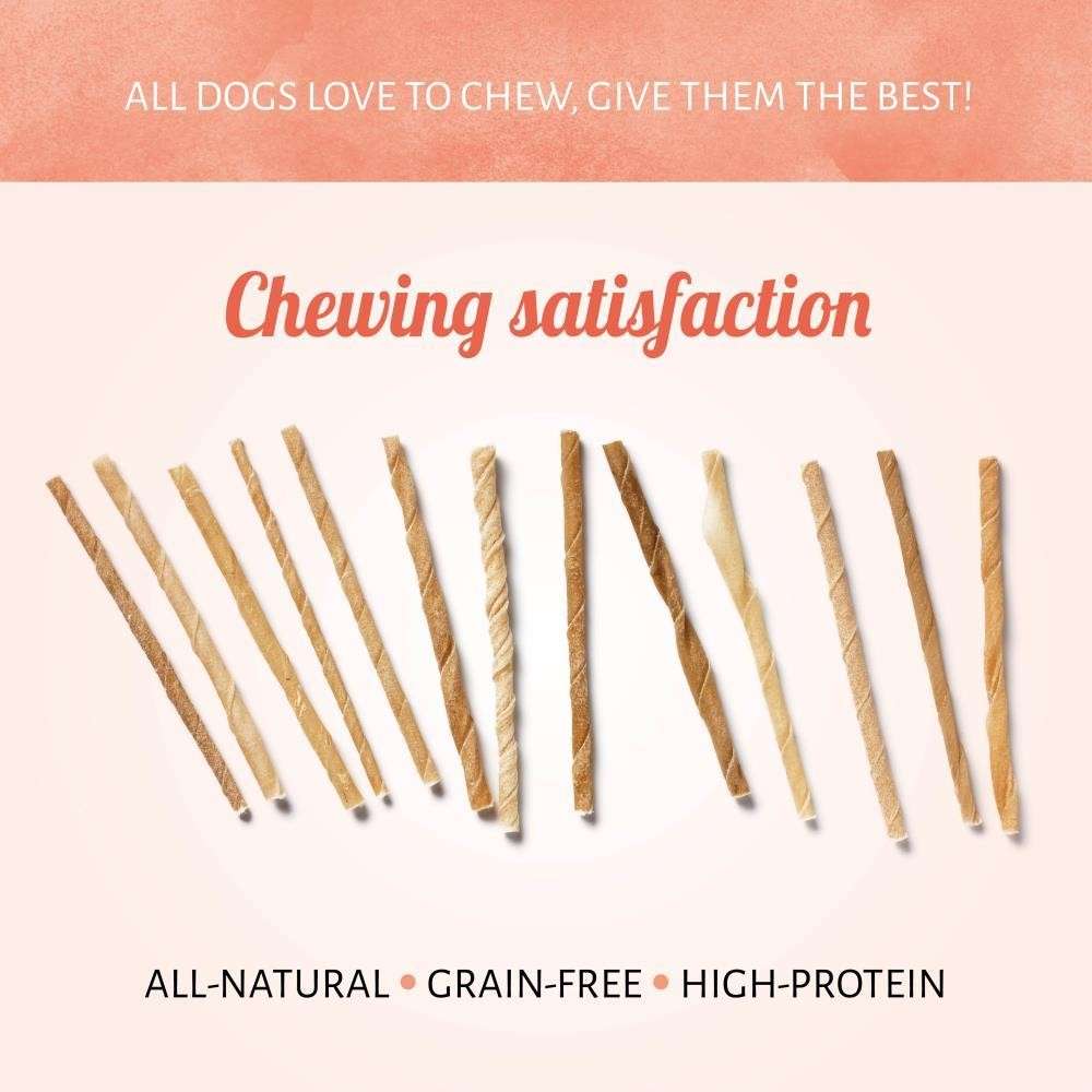 Gli articoli per la masticazione per cani Bastoncini da Masticare sono fatti con della deliziosa pelle cruda. Questi articoli completamente naturali e a elevato contenuto proteico promuovono una sana masticazione e rappresentano il regalo perfetto per cani di taglie piccole e medie. Sono realizzati con ingredienti della massima qualità.