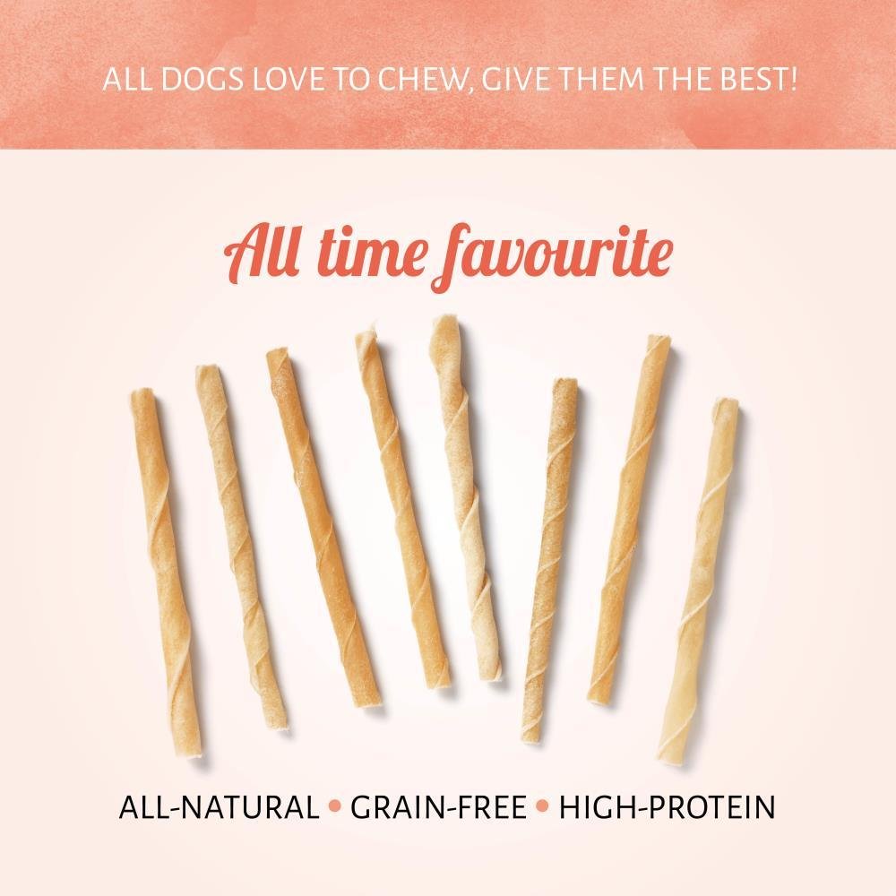 Gli articoli per la masticazione per cani, i nostri Bastoncini da Masticare, offrono una combinazione di consistenza che il tuo amico peloso apprezzerà sicuramente. Vera pelle cruda completamente naturale, ricca di sapore e benefica per l’igiene orale del tuo cane. Ottimi articoli per la masticazione per cani di tutte le taglie, i preferiti di sempre!