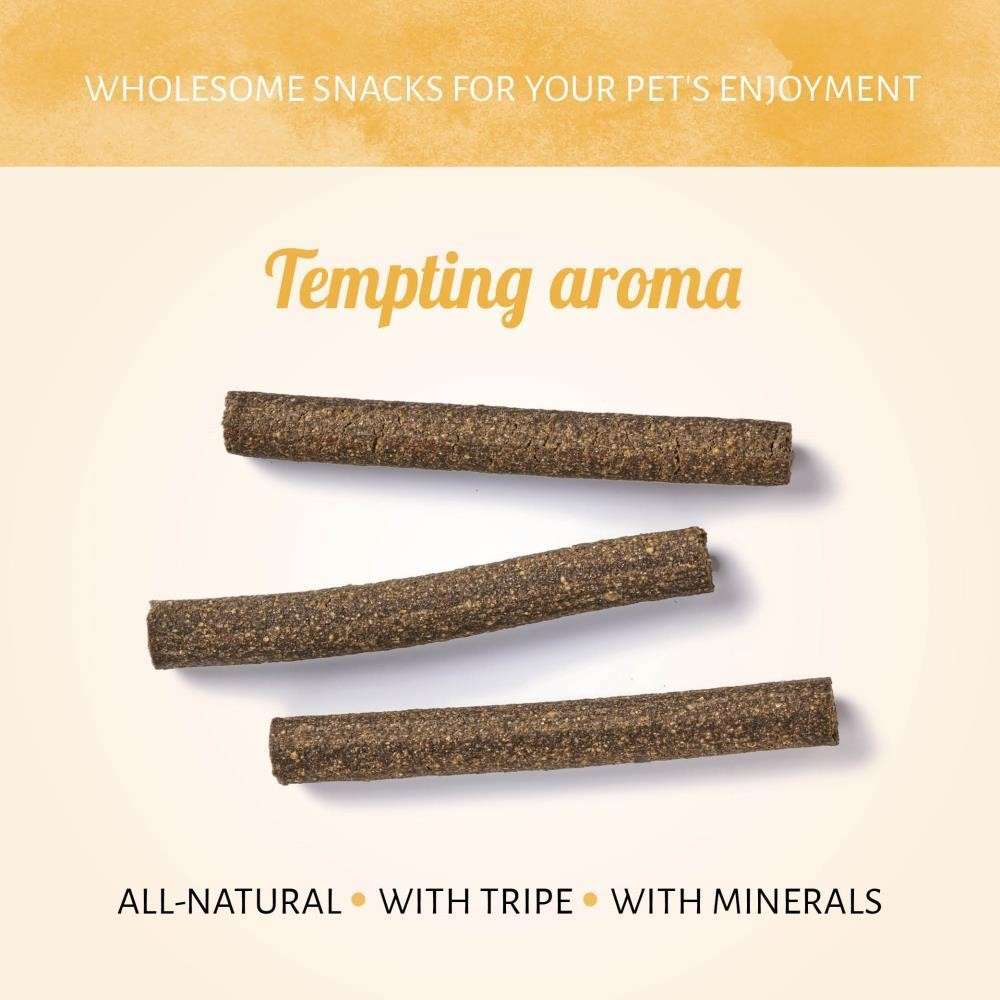 Mostra al tuo cane l’amore che provi per lui dandogli uno spuntino cucinato alla perfezione, i nostri Bastoncini di Trippa. Sono poco cotti, hanno un aroma invitante e il sapore gommoso di un bocconcino cotto al forno. In ogni bastoncino la bontà delle cose genuine fatte in casa.