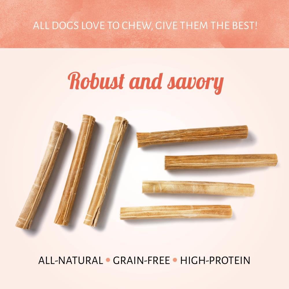 Regala al tuo amico peloso il gusto irresistibile degli articoli per la masticazione, i nostri Bastoncini in Pelle di Bovino. Questi articoli in pelle cruda completamente naturali sono di lunga durata e alleviano la noia e l’ansia. Masticare questi bastoncini manterrà il tuo cane felice e impegnato.