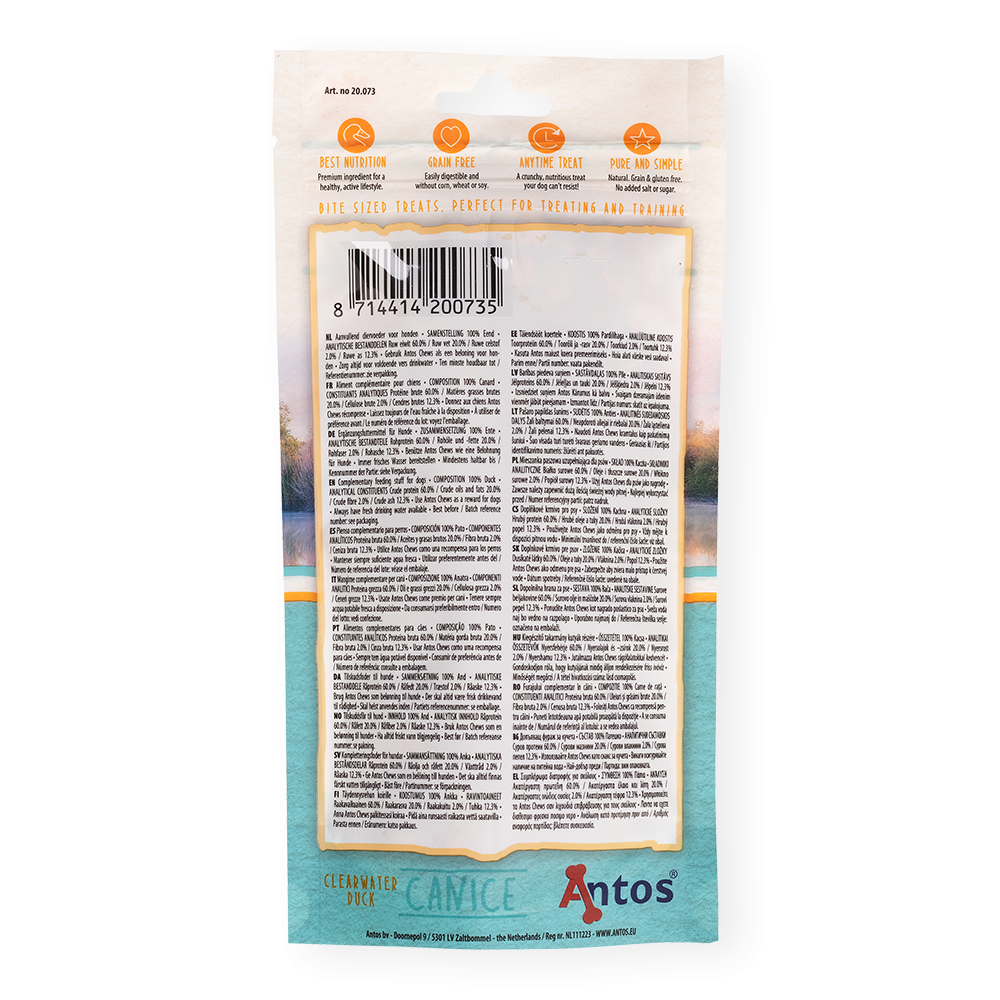 Prendi per il tuo buon amico a quattro zampe gli snack per cani Canice al gusto di anatra. Realizzati tenendo a mente gli amanti della carne, questi bocconcini per cani sono ricchi di proteine naturali derivanti dall’anatra. Ricchi di sostanze nutritive salutari, hanno un sapore che il tuo cane amerà.