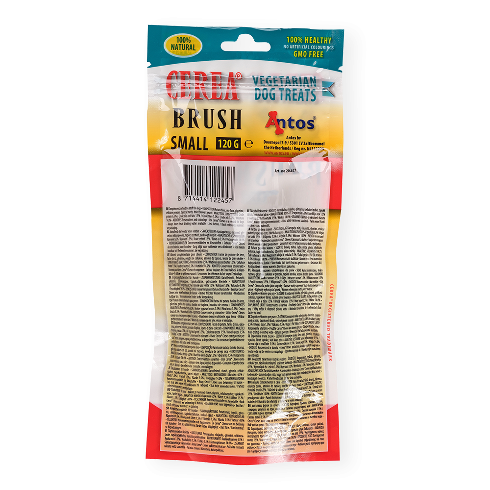 Premia il tuo cane dandogli un bocconcino che non smette di contribuire al suo benessere! Il nostro articolo per la masticazione Cerea Brush è naturale, privo di grani e ha una forma unica che contribuisce a contrastare la formazione della placca e del tartaro. È realizzato con ingredienti naturali e facili da digerire.