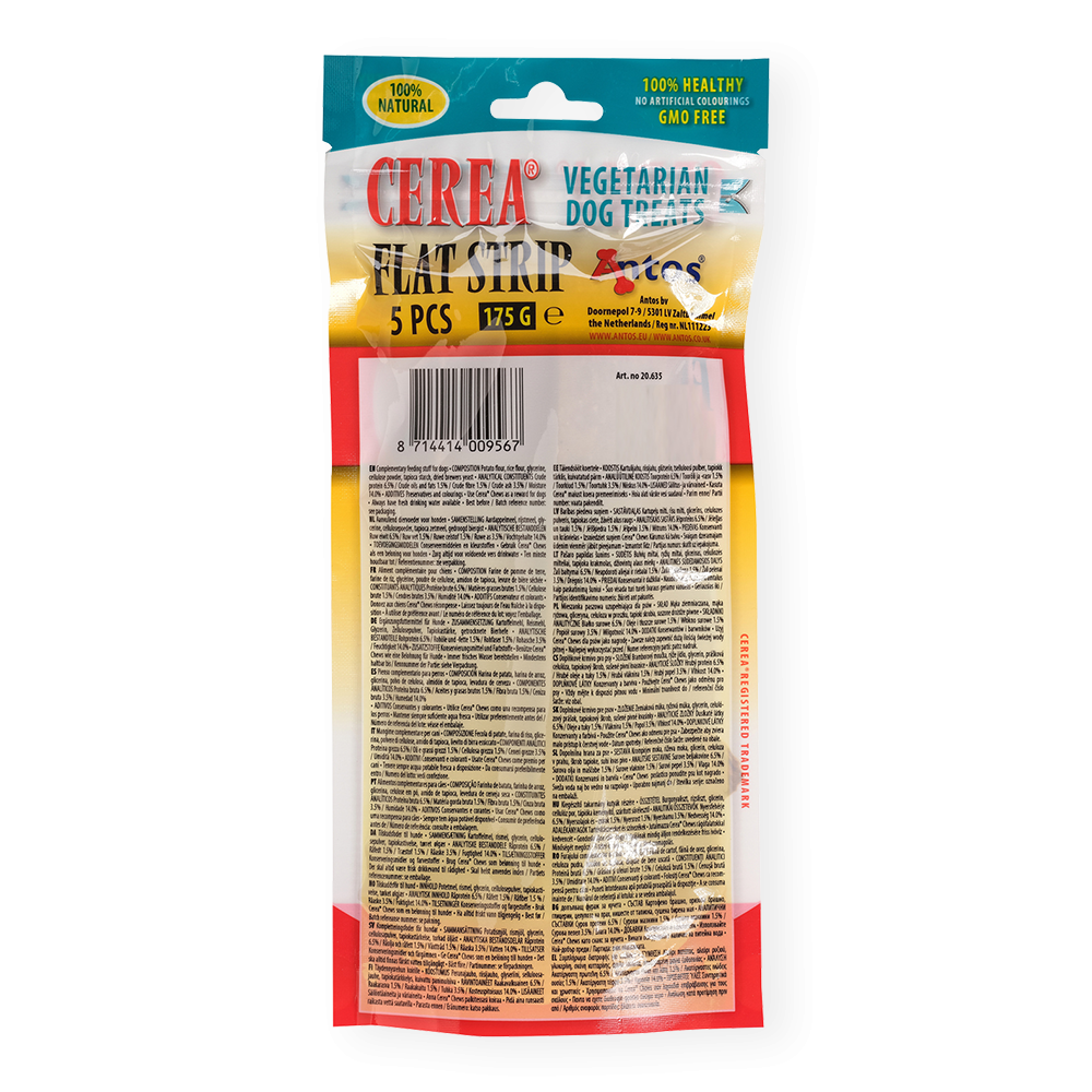 Preserva l'igiene dentale del tuo compagno a quattro zampe grazie agli articoli per la masticazione Cerea Flat Strip. Questi bocconcini senza cereali e senza glutine sono realizzati con ingredienti naturali per garantire che l'alito del tuo amico a quattro zampe sia sempre fresco.