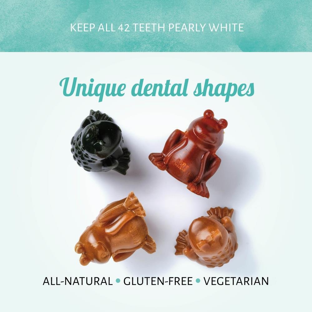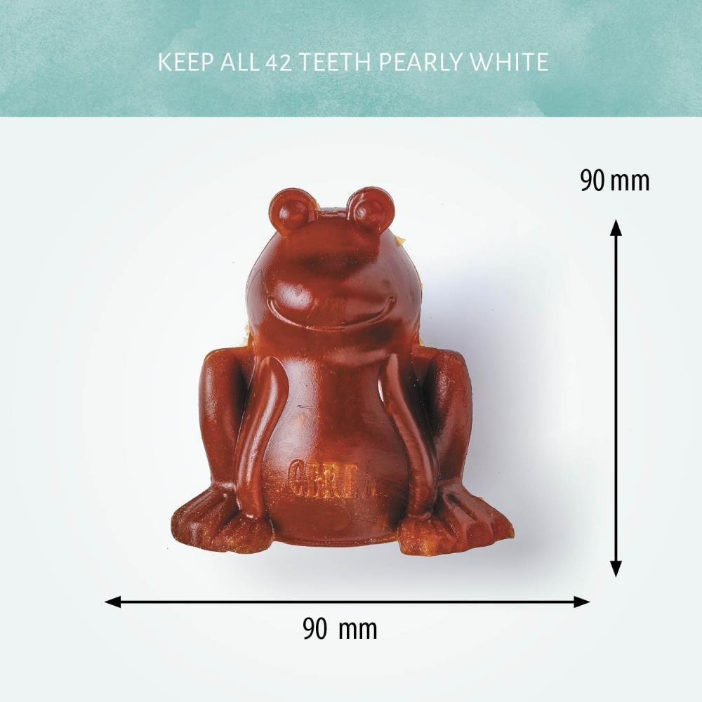 Gli esclusivi articoli per la masticazione a forma di pomello Cerea Rana aiutano a prevenire l’alito cattivo e l’accumulo di placca e tartaro. L’igiene dentale è importante tanto per i cani quanto per gli esseri umani, quindi dai al tuo cane uno di questi prodotti ogni giorno per tenere lontano il veterinario-dentista.