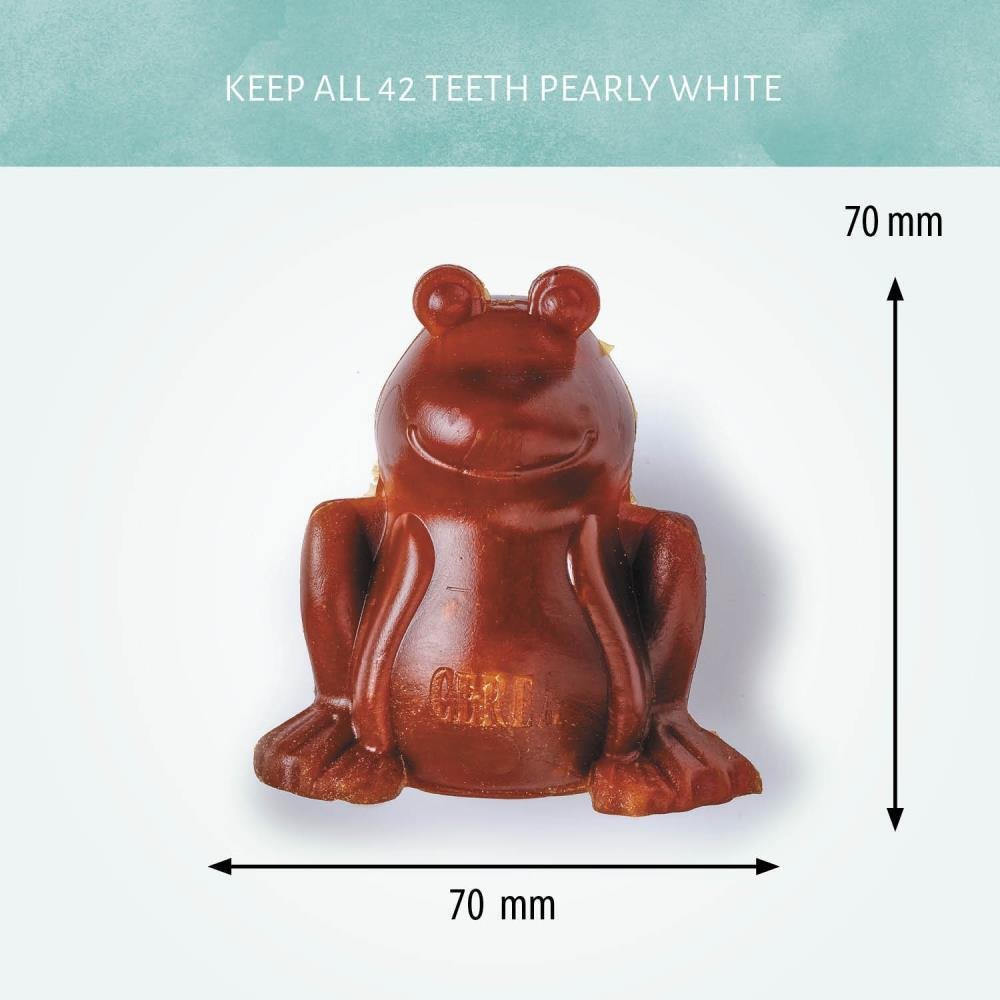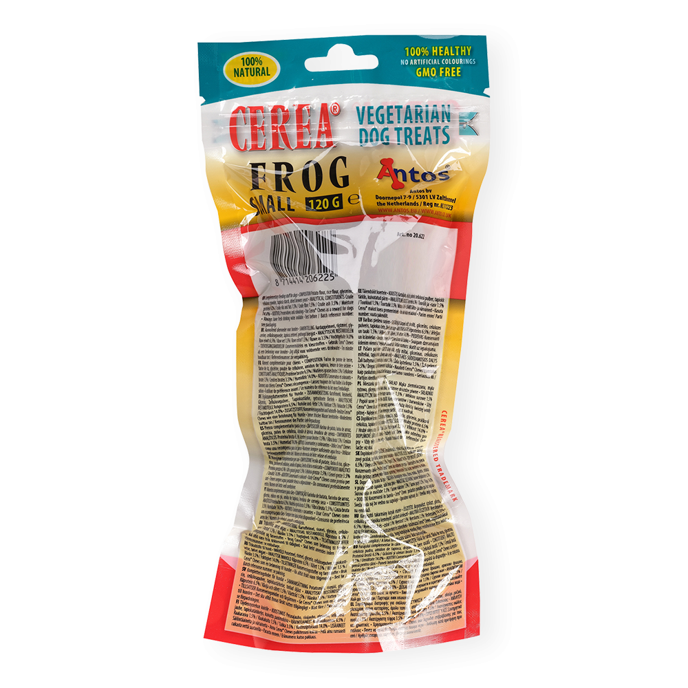 La forma divertente della nostra Cerea Rana contribuisce a rimuovere il tartaro e la placca mentre il tuo cane la mastica. Questi articoli per la masticazione sono a basso contenuto di grassi, privi di glutine, vegetariani e del tutto naturali. Sicuramente il tuo cane amerà gli ingredienti deliziosi che la compongono.