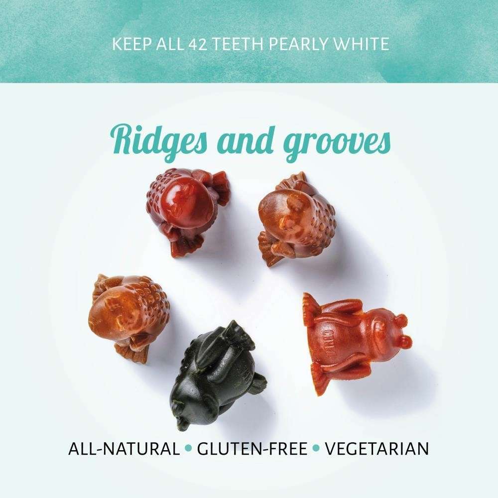 Spazzolarsi i denti diventa un piacere. La nostra Cerea Rana è realizzata con dei rilievi e delle scanalature che contribuiranno a ridurre la placca, il tartaro e l’alito cattivo del tuo animaletto. I bocconcini senza glutine e vegetariani tengono lontano il veterinario-dentista!