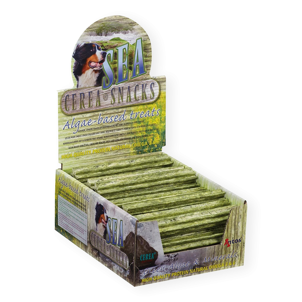 Completamente naturale e integralmente digeribile, il Cerea Sea Eurostar è un articolo per la masticazione sano, a base di verdure e alghe, con un contenuto di grassi minimo. Essendo a base di fecola di patate, è particolarmente adatto ai cani allergici ai glutine.