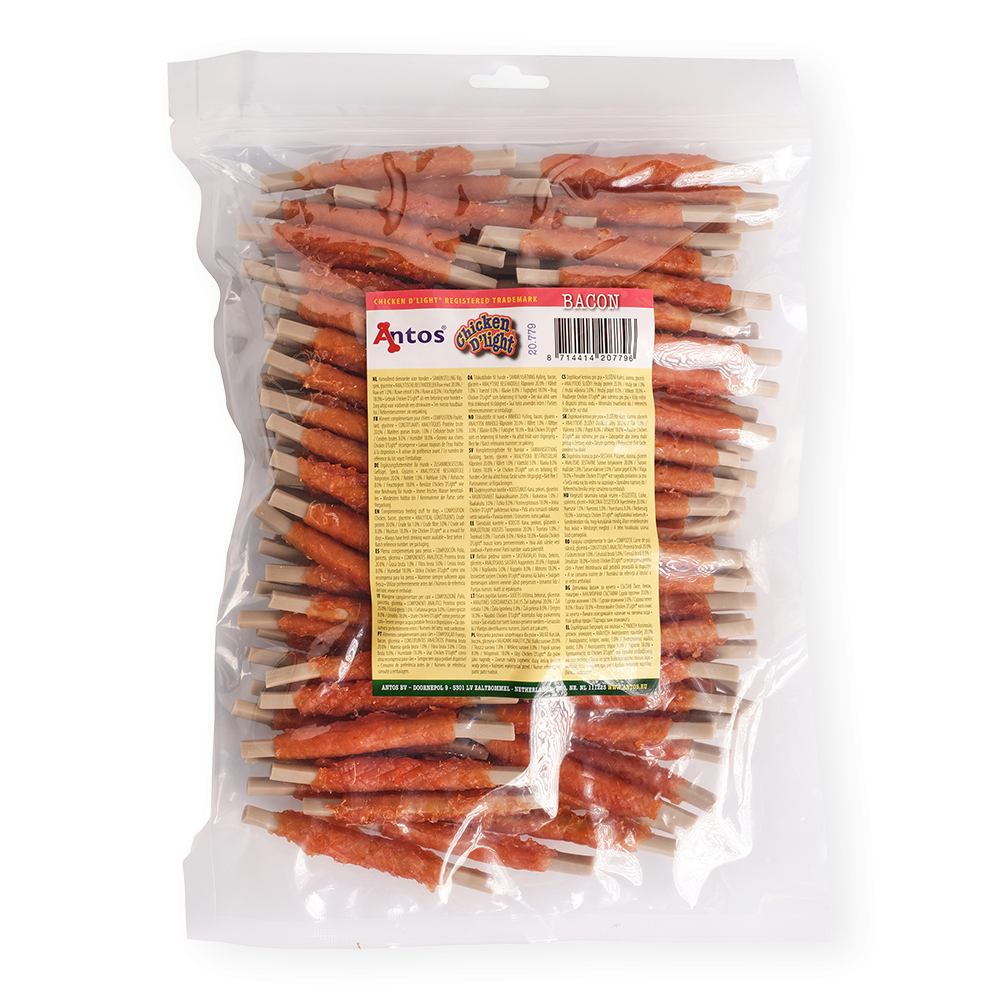 Veri bocconcini di carne che faranno venire l’acquolina in bocca al tuo cane. I Chicken D'light Bacon sono realizzati con delizioso pollo avvolto intorno a un bastoncino di pancetta. Il vostro cane perderà letteralmente la testa per questi bocconcini gustosissimi e senza cereali.