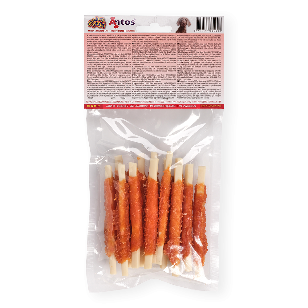 Ricompensa il tuo amico a quattro zampe con i Chicken D'light Bacon. Il pollo dal sapore ricco di carne avvolto intorno a un bastoncino di pancetta rappresenta un’irresistibile combinazione di gusto e ha una gradevole consistenza al morso.