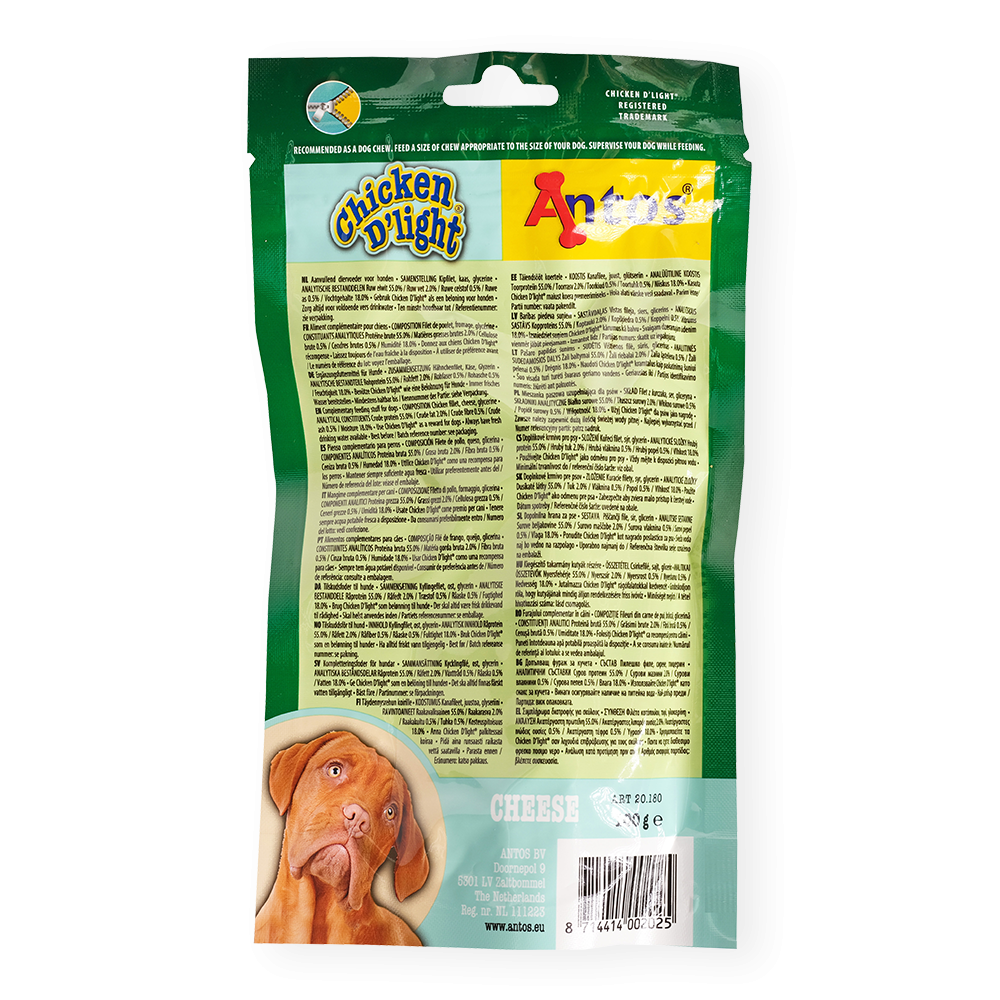 Dai al tuo cane la ricompensa migliore, il Chicken D'light Cheese. Con del vero pollo come ingrediente primario, questi bocconcini a forma di bistecca sono realizzati con il formaggio e hanno un sapore irresistibile che il tuo amico a quattro zampe non potrà non apprezzare.