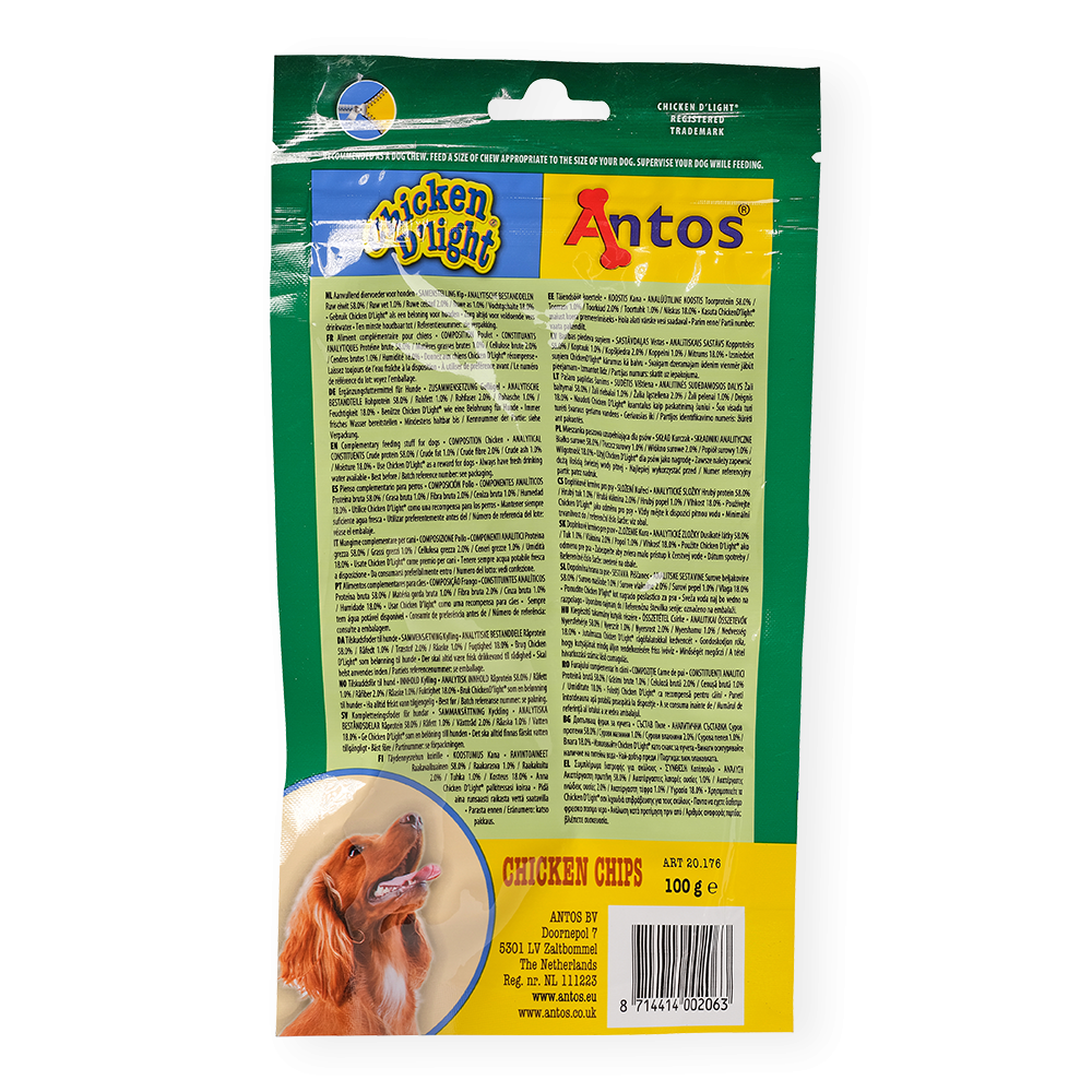 Il tuo cane amerà le nostre Chicken D'light Chicken Chips. Questi deliziosi bocconcini ricchi di proteine e con pochi ingredienti rappresentano un’ottima scelta per i cani che amano il pollo. La loro consistenza croccante farà bene ai loro denti e alle loro gengive.