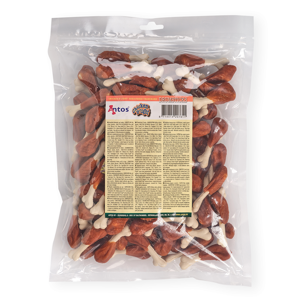 Realizza i sogni del tuo cane con i Chicken D'light Drumsticks. Queste deliziose ricompense sono fatte con petto di pollo avvolto intorno a un osso di calcio. Sono perfette per i cani sia di taglia grande, sia piccola: queste gustose prelibatezze delizieranno sicuramente il tuo amico peloso.