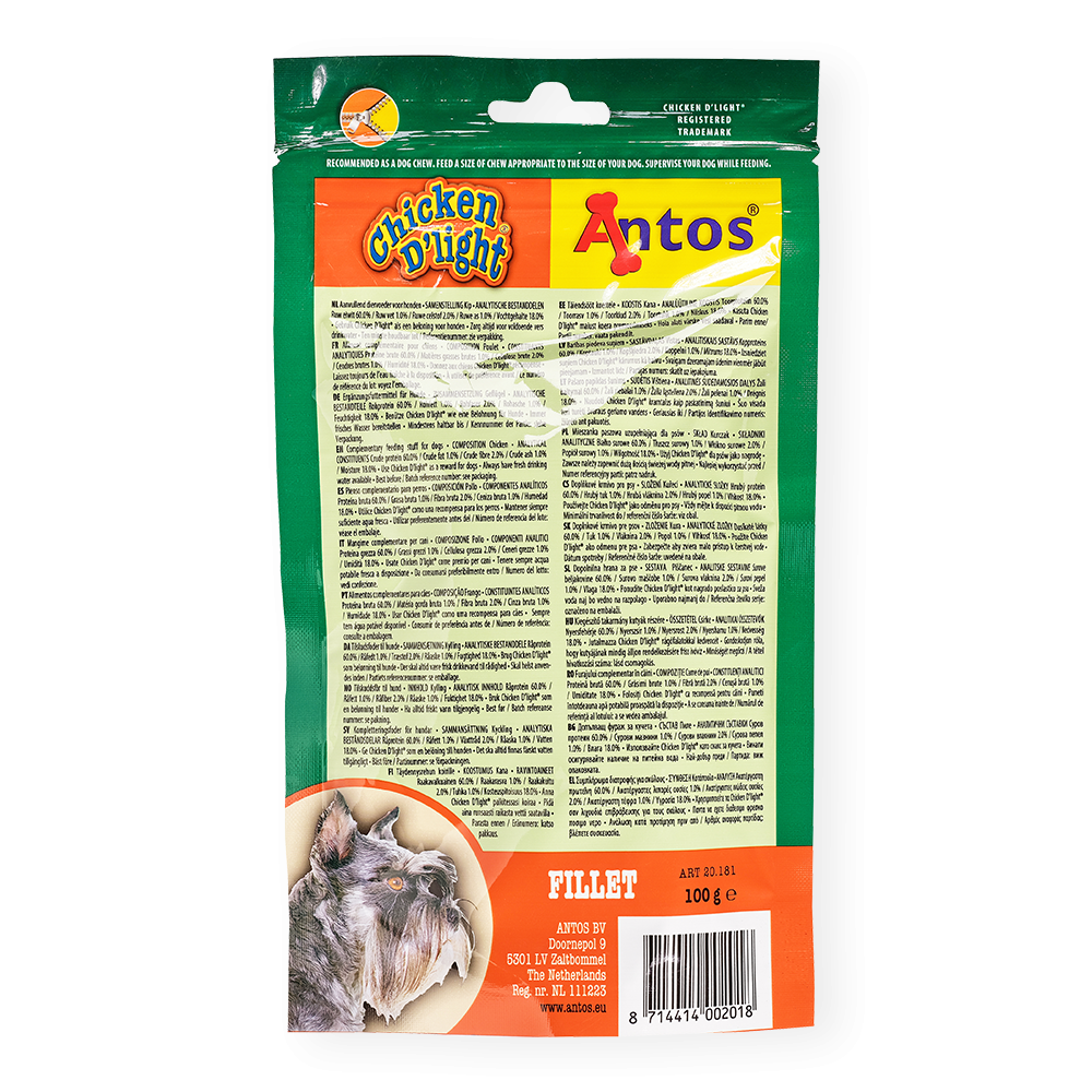 I cani adorano il pollo, e allora diamoglielo! All’interno di ogni confezione di Chicken D'light Fillet troverai dei veri petti di pollo dal sapore delizioso. È una prelibatezza semplice e senza additivi.