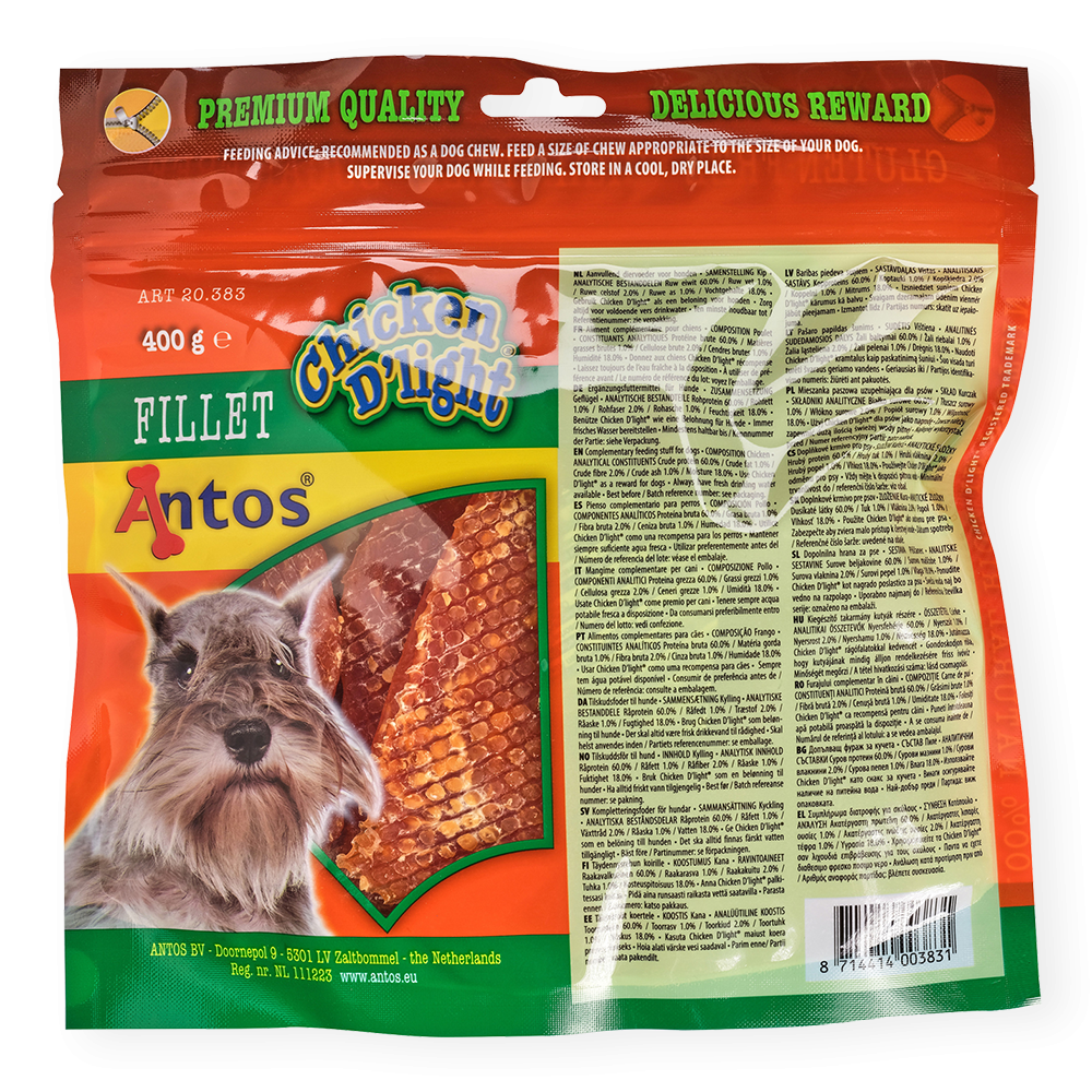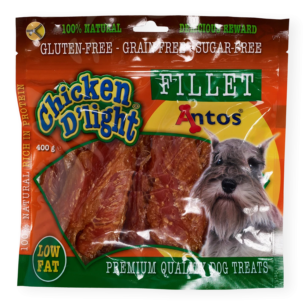 Dai al tuo cane il filetto Chicken D'light Fillet. Questi bocconcini di pollo sono deliziosamente succulenti e adatti sia per i cani grandi, sia per quelli piccoli. Sono privi di glutine e renderà il tuo cane felice e soddisfatto.