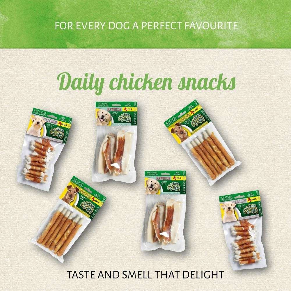 Il tuo cane ama il pollo, giusto? Il Chicken Multipack include tre dei bocconcini della ChickenD'light preferiti dal tuo cane. Questi semplici bocconcini sono realizzati con del delizioso pollo, della vera pelle cruda e hanno un sapore e un odore che delizieranno sicuramente il tuo amico peloso.
