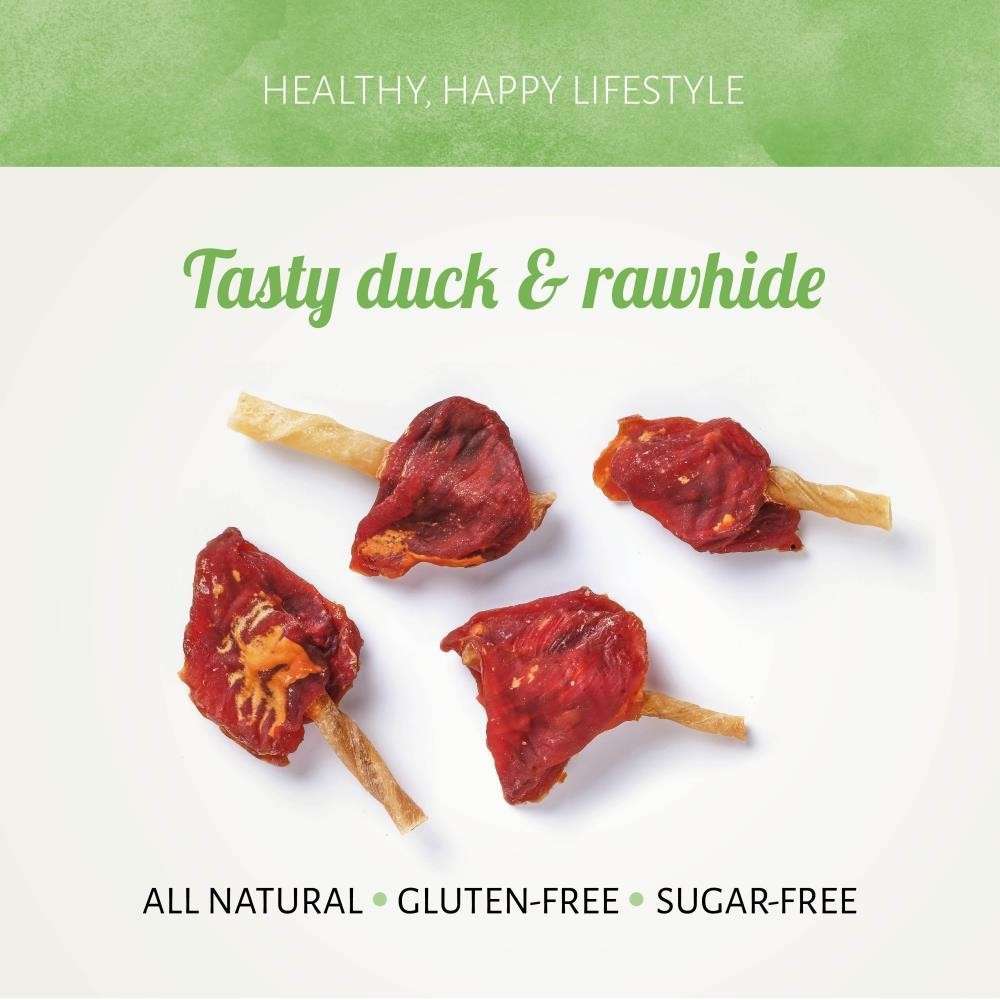Dai al tuo compagno a quattro zampe qualcosa di più di un semplice bocconcino, dagli i Duck D'light Flags. Questi bocconcini gommosi sono molto morbidi poiché l’anatra è avvolta intorno a un bastoncino di pelle d’oca. Sono realizzati senza additivi per la gioia del tuo cane.