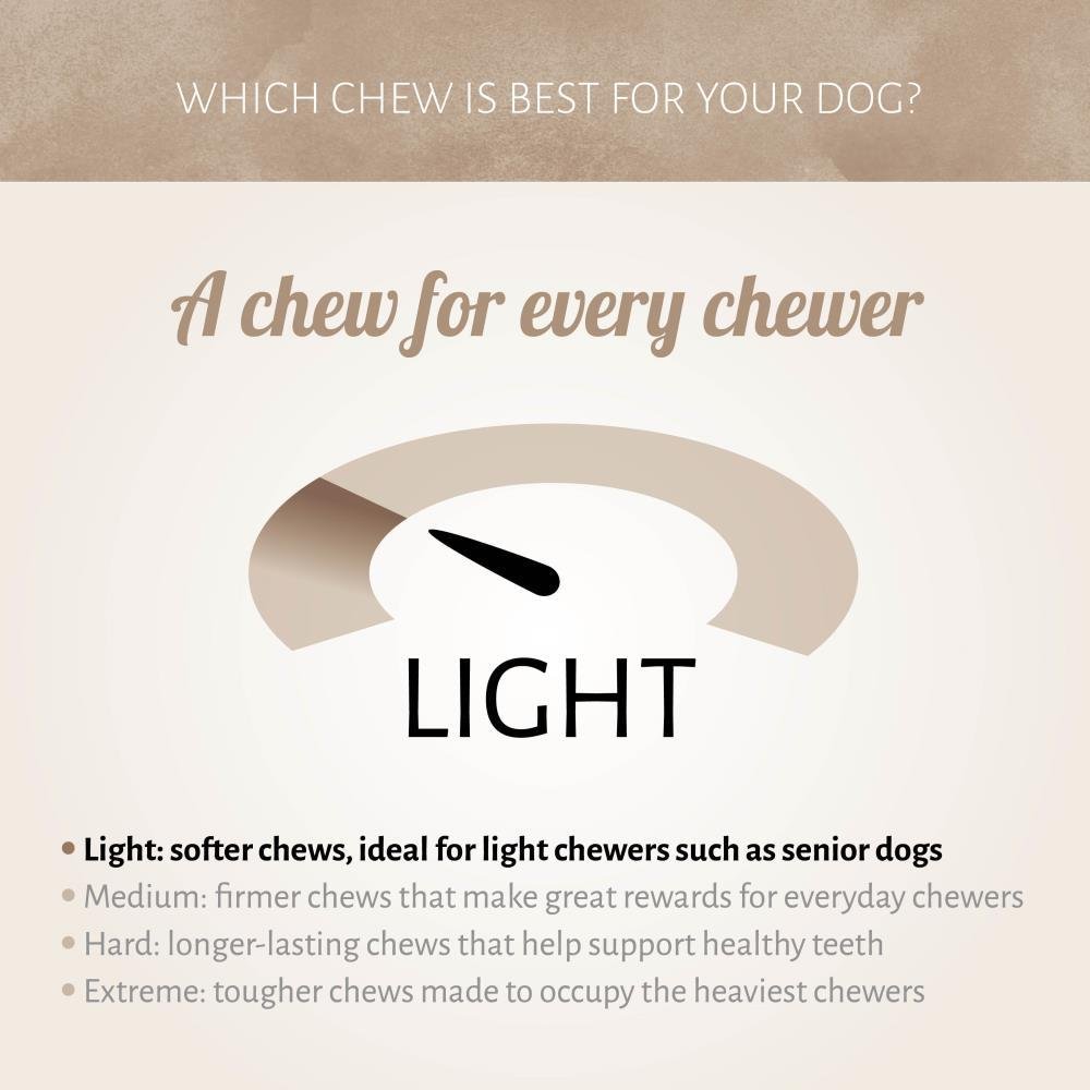 Consigliato come snack per cani. Vizialo responsabilmente: scegli gli snack, come consigliato, in base alla taglia del tuo cane. Per la sicurezza dei tuoi animali, controlla il tuo cane mentre mastica o mangia lo snack. Tieni acqua fresca sempre a portata di mano. Tenere in luogo fresco, pulito e asciutto. Questo prodotto è da considerarsi come snack e non bisogna considerarlo come un pasto completo. Non è cibo per uomini.
