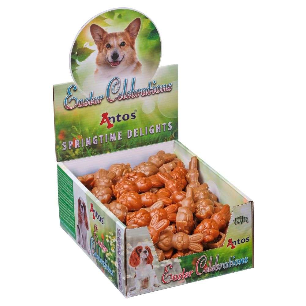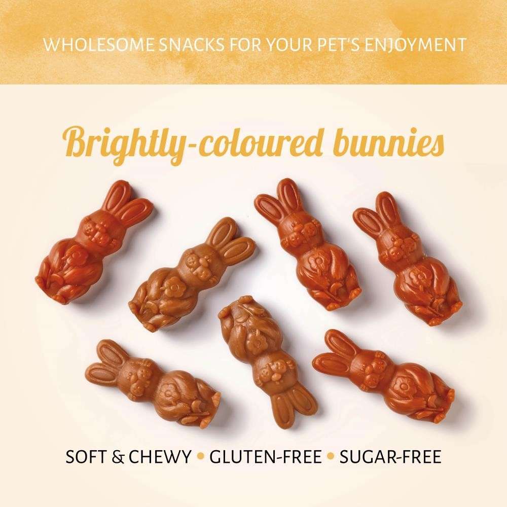 Aggiungi un po’ di dolcezza alla primavera con i nostri deliziosi croccantini per cani Festeggiamenti di Pasqua. Realizzati a mano e con amore, questi coniglietti dai colori vivaci sono perfetti per viziare, premiare il tuo cane o per tutte le occasioni che rappresentano una via di mezzo. Un perfetto croccantino di Pasqua da condividere, e ottimo anche per la caccia alle uova di Pasqua. Tutti fuori, allora!