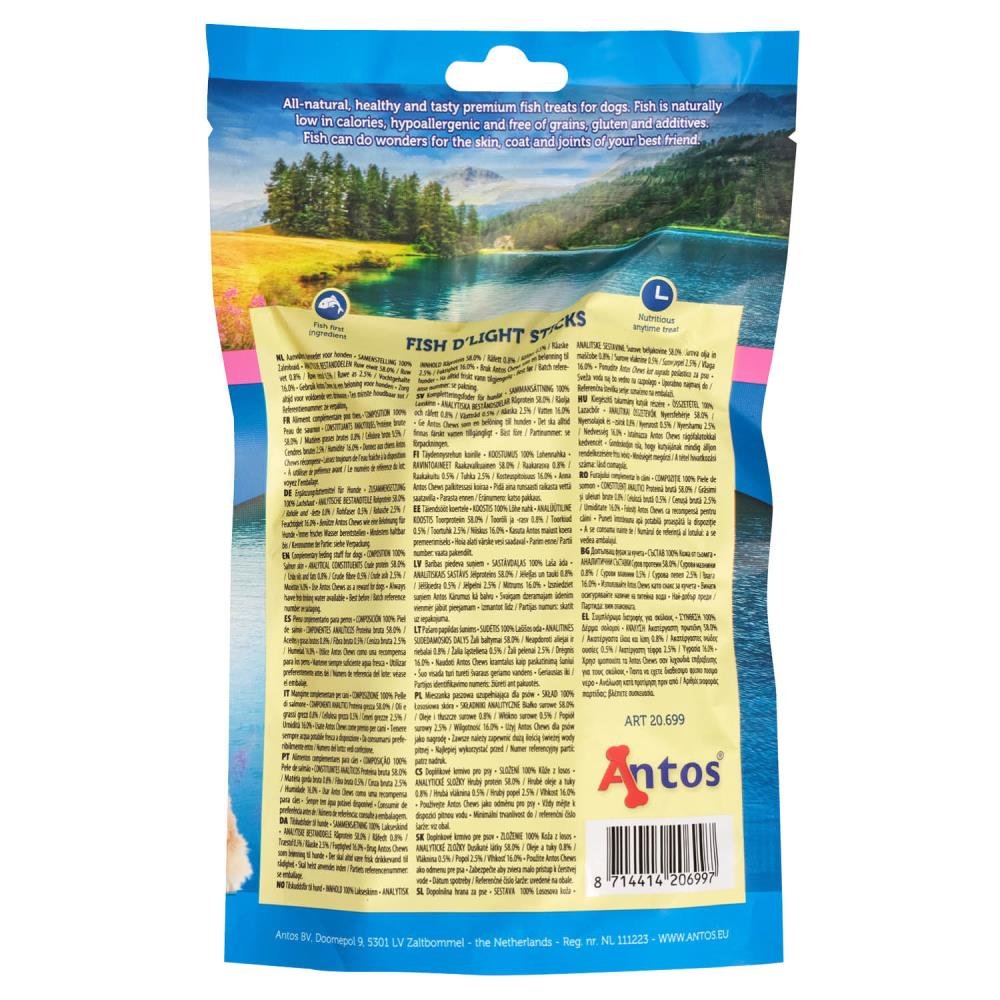 Dai al tuo amico peloso un assaggio di salmone con i nostri Fish D'light Sticks. I bocconcini sono realizzati con pelle di salmone commestibile e naturale al 100%, riducono anche il tartaro e la formazione di placca per la salute delle gengive e dei denti del tuo cane.