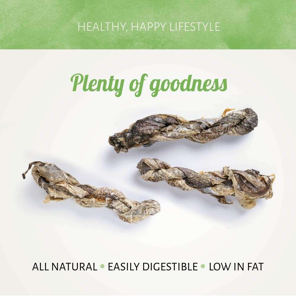 I nostri Fish D'light Twist sono realizzati con pelle attorcigliata di pesce naturale al 100%. Naturalmente poveri di calorie, hanno un sapore delizioso che il tuo cane amerà sicuramente. La consistenza ruvida di questi bocconcini rimuoverà il tartaro dai denti del tuo cane.