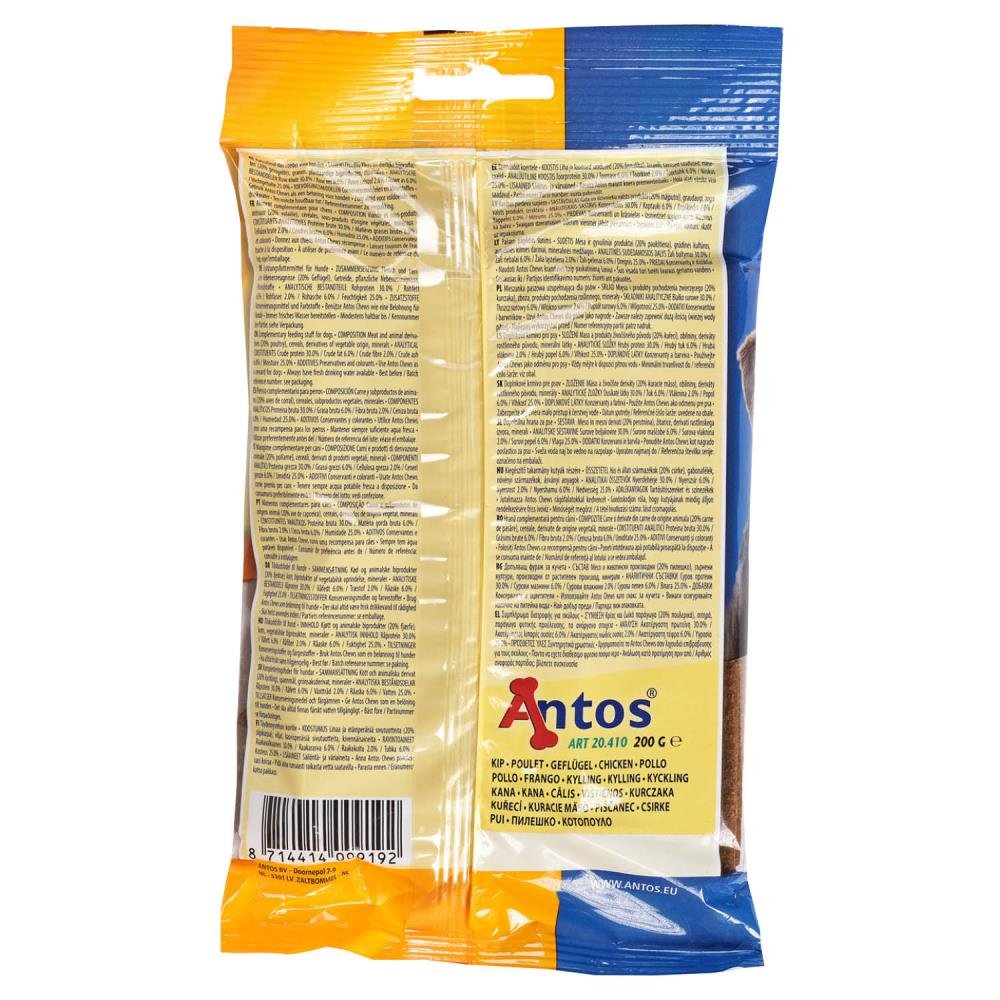 Consigliato come snack per cani. Vizialo responsabilmente: scegli gli snack, come consigliato, in base alla taglia del tuo cane. Cani < 5 kg (XS): 1 pezzi al giorno. 6-10 kg (S): 1,5 pezzi al giorno. 11-25 kg (M): 3,5 pezzi al giorno. 26-35 kg (L): 4,5 pezzi al giorno. Spezzare in piccoli pezzi per cani piccoli. Per la sicurezza dei tuoi animali, controlla il tuo cane mentre mastica o mangia lo snack. Tieni acqua fresca sempre a portata di mano. Tenere in luogo fresco, pulito e asciutto. Non è cibo per uomini.
