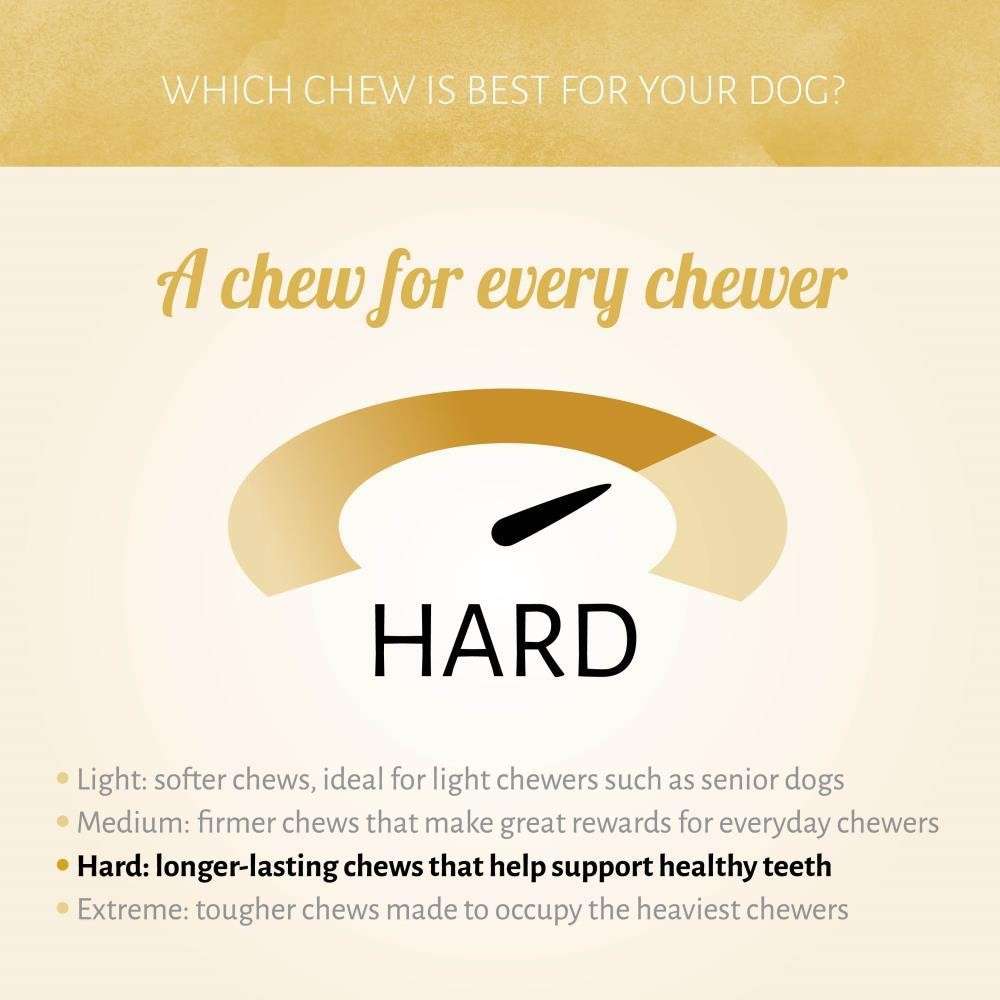 Consigliato come snack per cani. Vizialo responsabilmente: scegli gli snack, come consigliato, in base alla taglia del tuo cane. Per la sicurezza dei tuoi animali, controlla il tuo cane mentre mastica o mangia lo snack. Tieni acqua fresca sempre a portata di mano. Tenere in luogo fresco, pulito e asciutto.