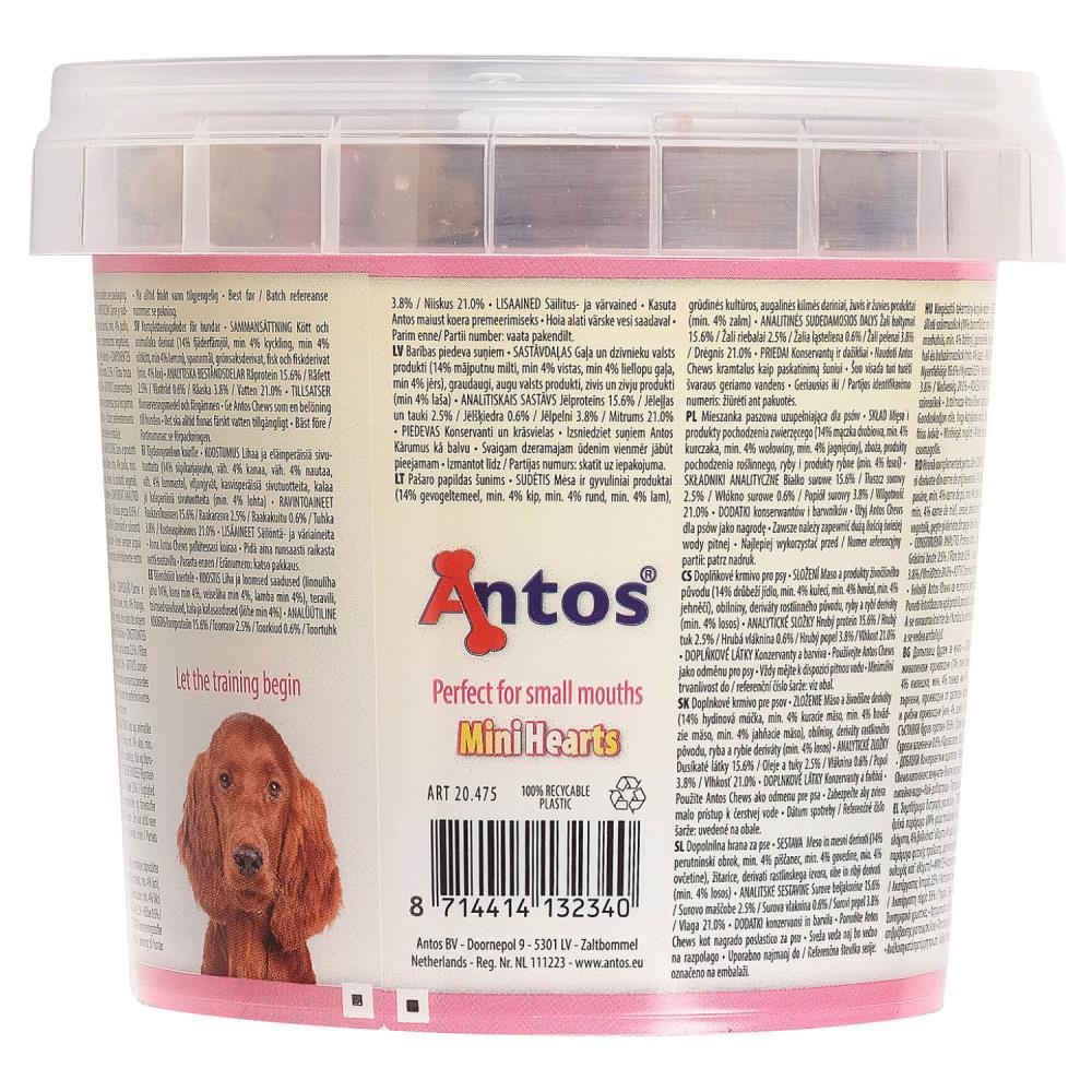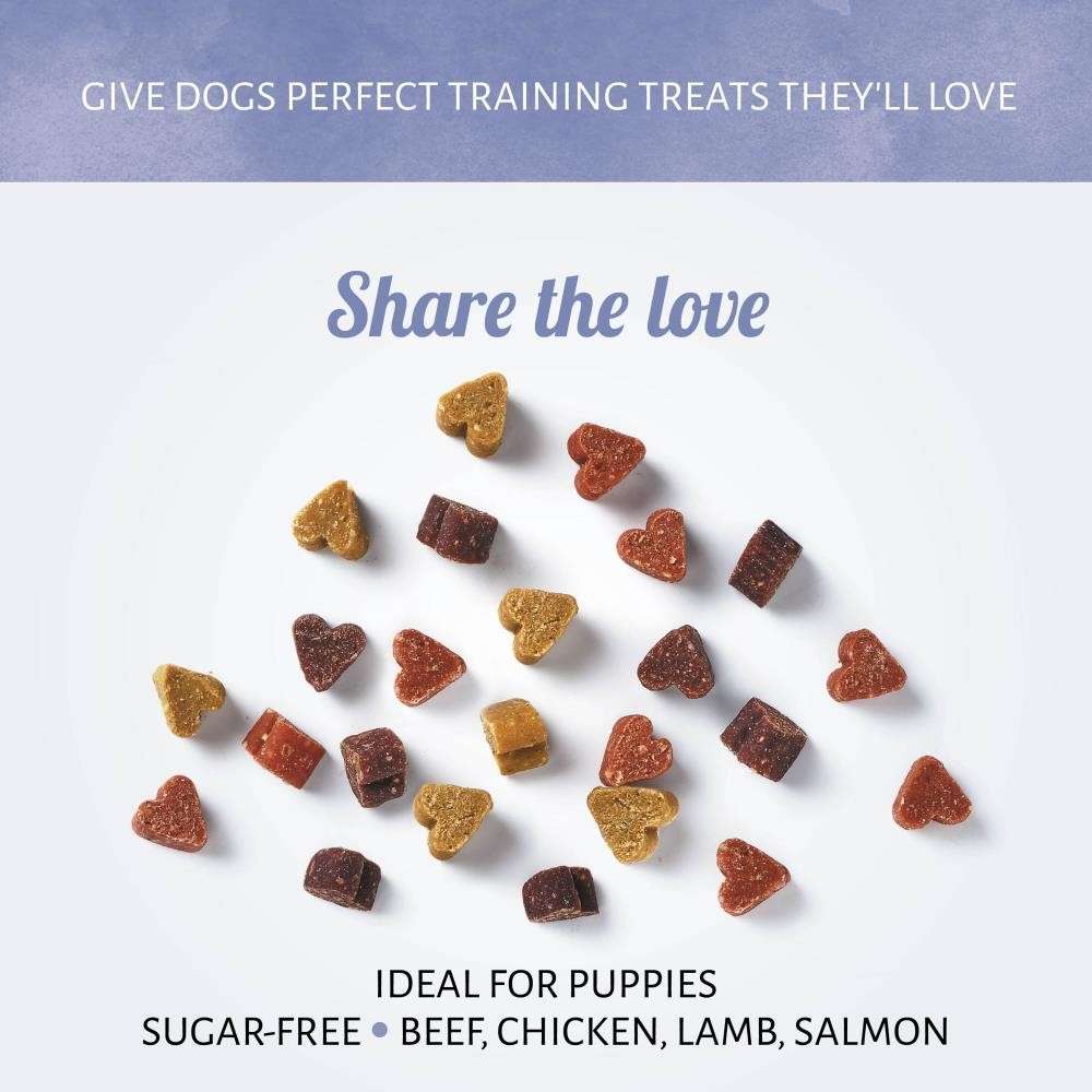 Se sei innamoratissimo del tuo cagnolino, allora regalagli i nostri bocconcini per cani Mini Hearts. Ispirati ai dolci del cuore, tutti conosciamo e amiamo questi dolcetti che faranno leccare le labbra al tuo cane; sono il modo ideale per celebrare la relazione con il tuo amico più fedele.