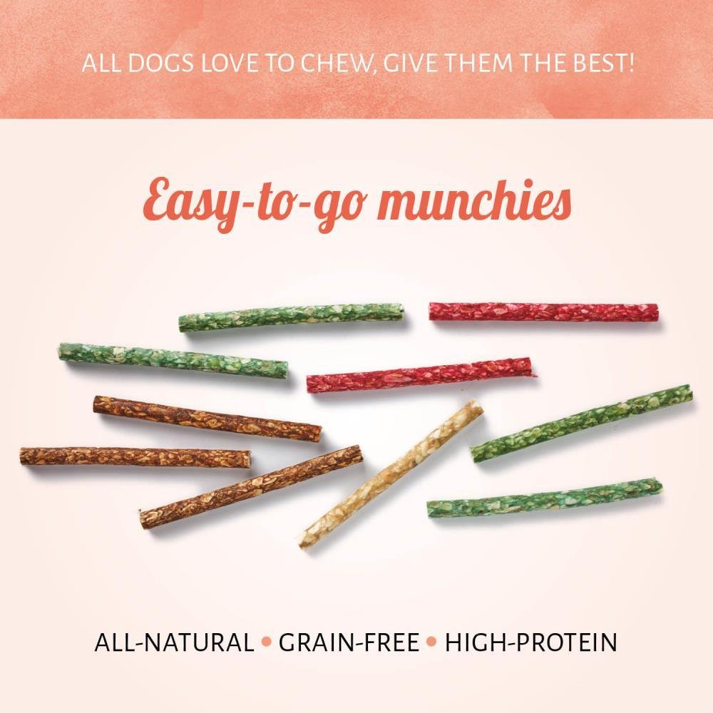 Dai al tuo cane uno spuntino facile da portare in giro, dagli i nostri Munchy Sticks Assortito, un prodotto ricco di sapori. La pelle cruda è l'ingrediente di questi bastoncini che rappresentano un articolo per la masticazione rapida e deliziosa, facile da rosicchiare per i cani. Articoli per la masticazione a elevato contenuto di proteine e basso di grassi.