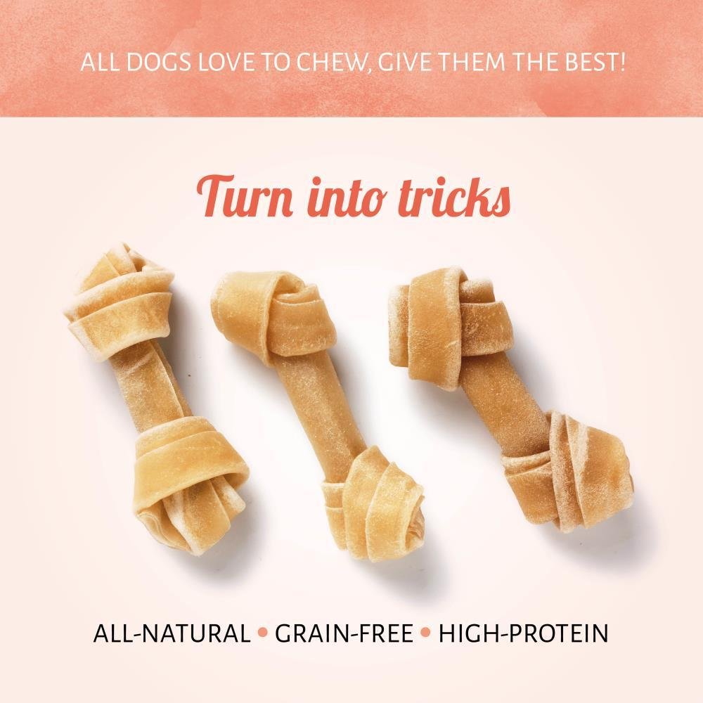Insegna al tuo migliore amico un nuovo trucco, e poi premialo con gli articoli per la masticazione per cani, i nostri Osso Annodato. Questi piccoli articoli per la masticazione sono progettati per durare a lungo e realizzati per soddisfare il naturale istinto masticatorio del tuo cane.