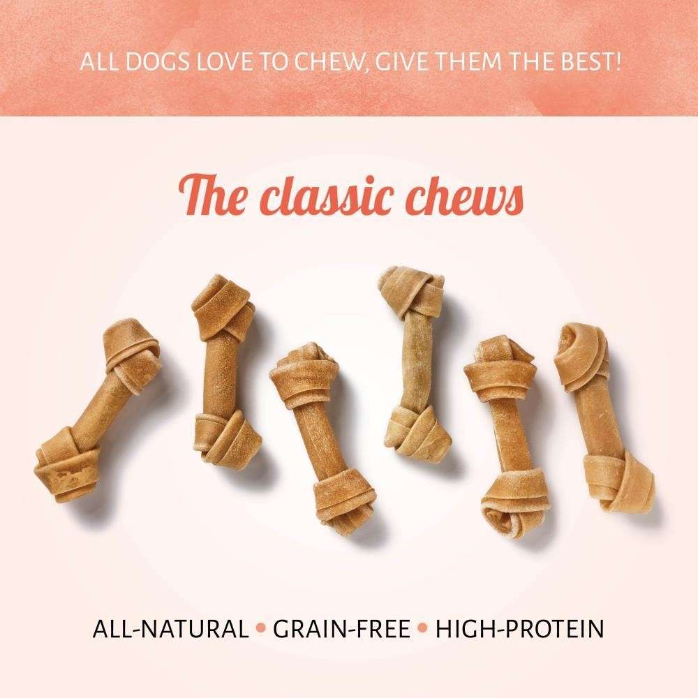 Puoi sentirti tranquillo se dai al tuo cane questi articoli per la masticazione per cani completamente naturali, i nostri Osso Annodato. Questi deliziosi articoli contribuiranno a mantenere l’igiene orale del tuo cane fornendogli un po’ di sollievo dalla noia o dall’ansia.
