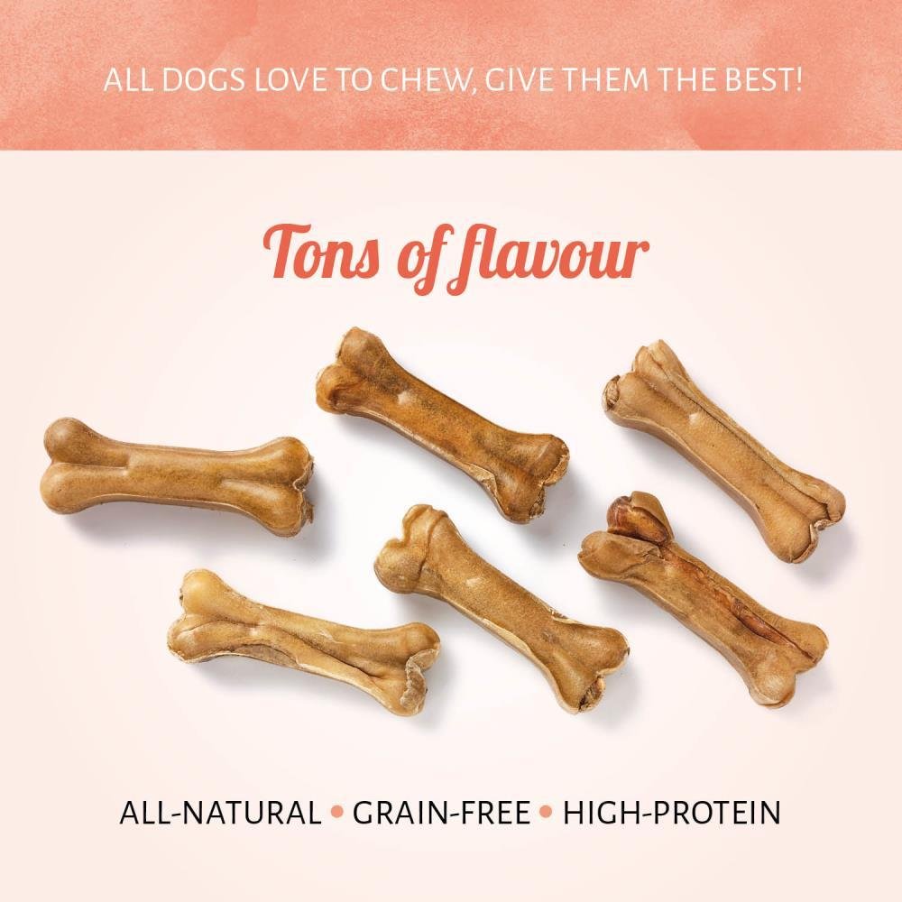 Consigliato come snack per cani. Vizialo responsabilmente: scegli gli snack, come consigliato, in base alla taglia del tuo cane. Per la sicurezza dei tuoi animali, controlla il tuo cane mentre mastica o mangia lo snack. Tieni acqua fresca sempre a portata di mano. Tenere in luogo fresco, pulito e asciutto. Questo prodotto è da considerarsi come snack e non bisogna considerarlo come un pasto completo.