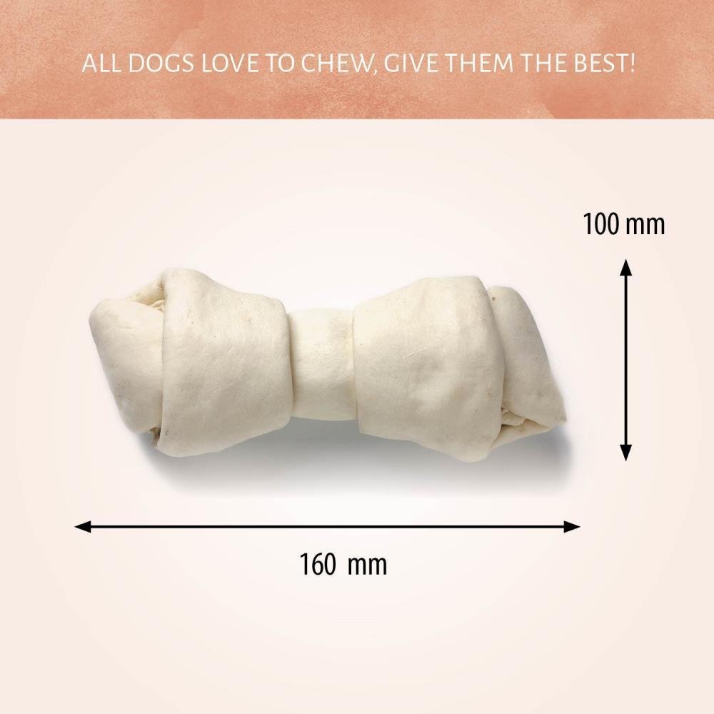 Regala al tuo amico peloso un osso vero, il nostro Raw Hide White Knotted Bone. Sicuramente il tuo cagnolino amerà questo osso di pelle cruda di dimensioni medie. Questo articolo per la masticazione ultrasottile offre al tuo cane ore di divertimento naturale, gustoso e gommoso.