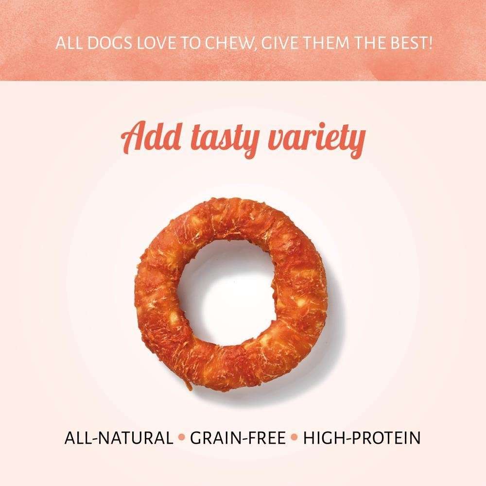 Solo ingredienti di alta qualità dal gusto saporito e profumato. Il nostro Raw Hide White + Chicken Ring farà scodinzolare di gioia il tuo cane facendogli venire voglia di tornare indietro per prenderne ancora. Tantissime proteine in ciascun morso!