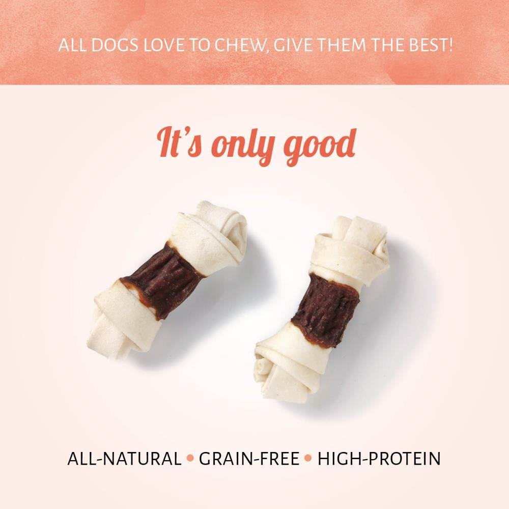 Mostra al tuo amico a quattro zampe quanto lo ami, dagli i nostri Raw Hide White + Duck Knotted Bone. Questi bocconcini naturali per cani si distinguono poiché la deliziosa carne d'anatra è avvolta intorno a un bastoncino di pelle cruda per dare al tuo cane tutta la bontà carnosa che lui ama.