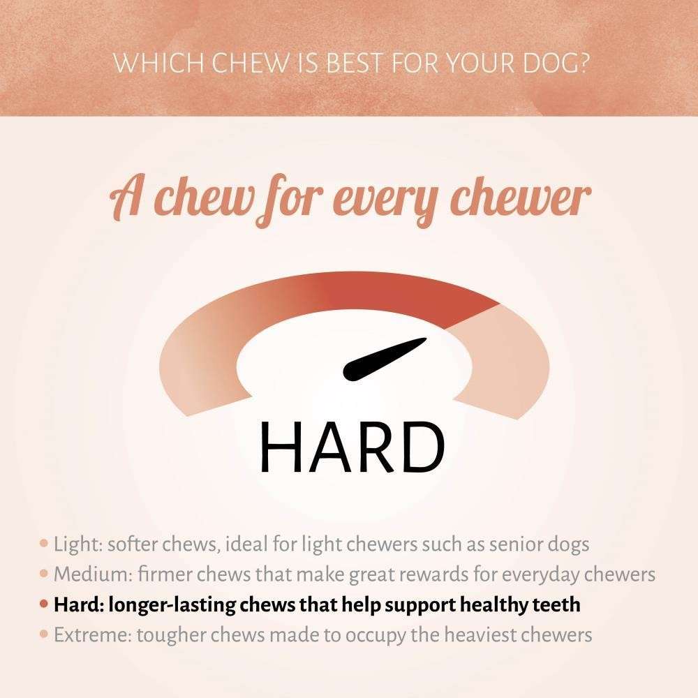 Consigliato come snack per cani. Vizialo responsabilmente: scegli gli snack, come consigliato, in base alla taglia del tuo cane. Per la sicurezza dei tuoi animali, controlla il tuo cane mentre mastica o mangia lo snack. Tieni acqua fresca sempre a portata di mano. Tenere in luogo fresco, pulito e asciutto.