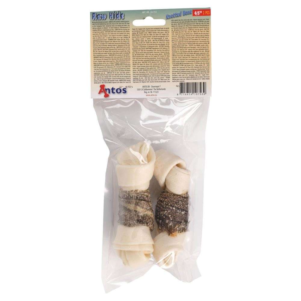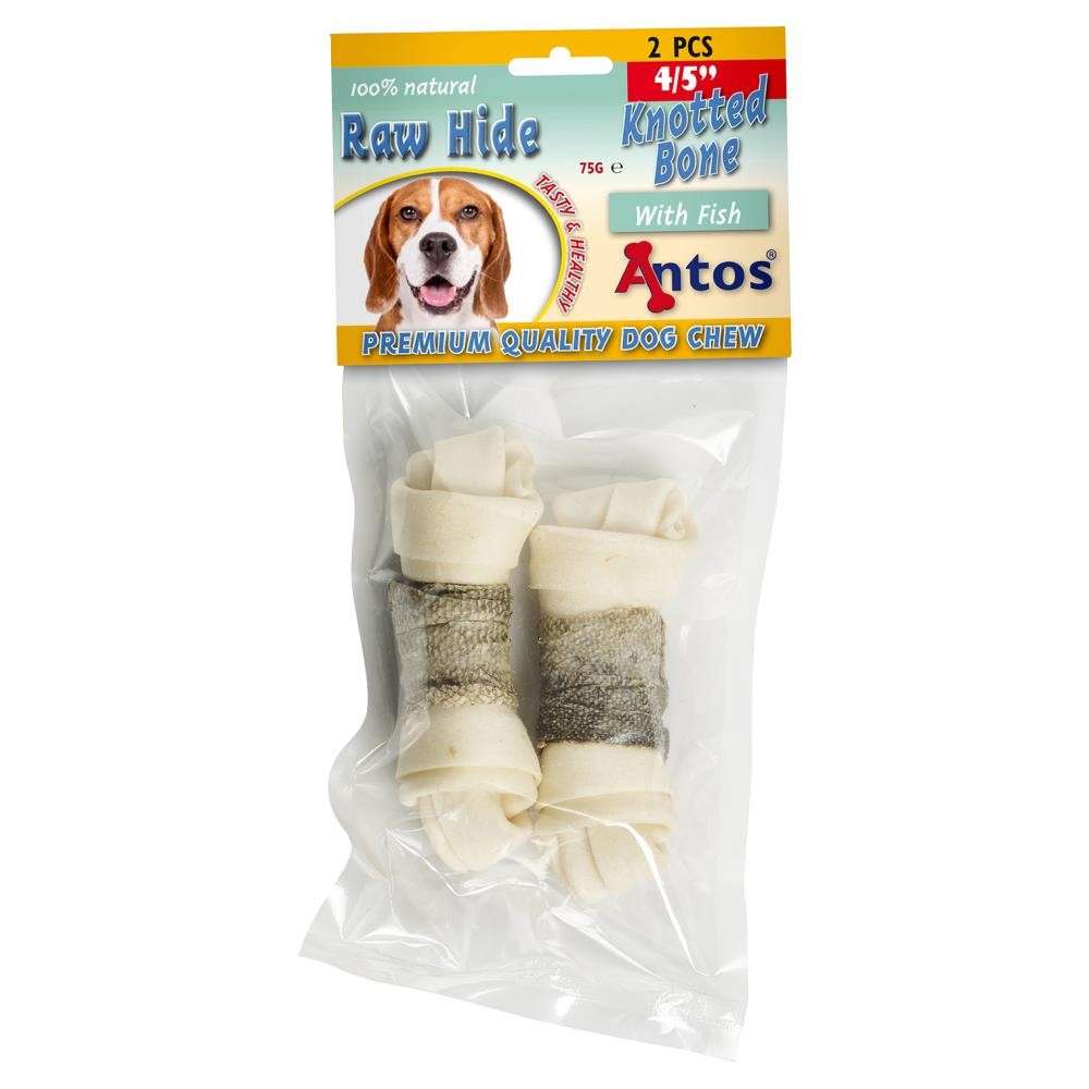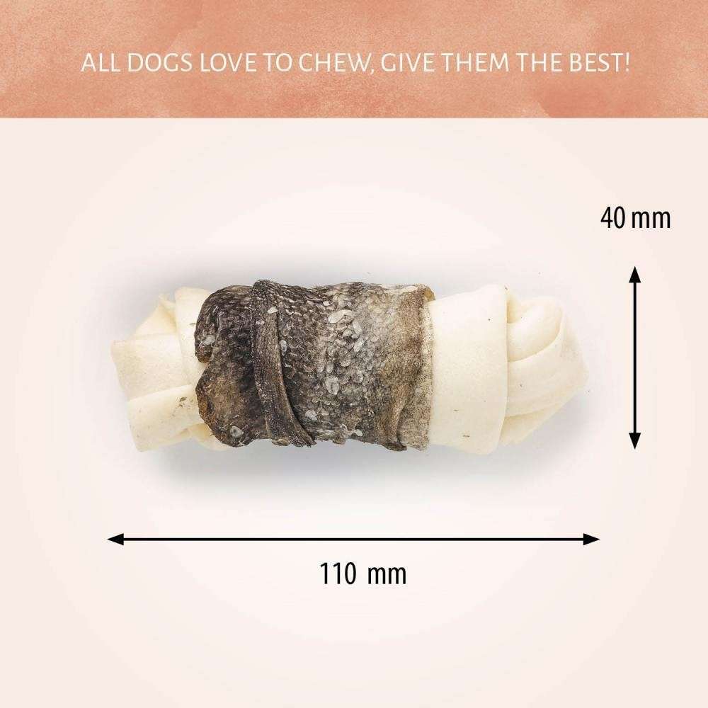 Raw Hide White + Fish Knotted Bone 4/5" 2 pezzi