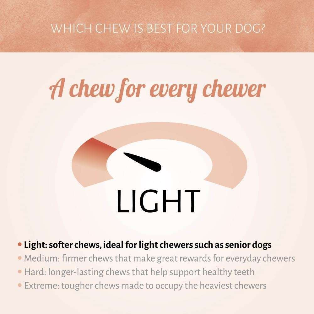 Consigliato come snack per cani. Vizialo responsabilmente: scegli gli snack, come consigliato, in base alla taglia del tuo cane. Per la sicurezza dei tuoi animali, controlla il tuo cane mentre mastica o mangia lo snack. Tieni acqua fresca sempre a portata di mano. Tenere in luogo fresco, pulito e asciutto.