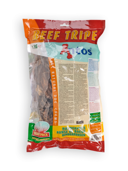La Trippa di Manzo è facilmente digeribile, e la sua consistenza soda e forma tortuosa servono per pulire i denti mentre il cane la mastica. Quindi, non solo aiuterà a mantenere i denti puliti, ma contribuirà anche a tenere lontana la noia regalando all’animale un’esperienza di masticazione sicura che farà sentire il padrone sicuro. Preme sottolineare che la Trippa di Manzo della Antos è stata ideata per cani di tutte le razze, taglie e per tutte le fasi della vita dell’animale, e non contiene affatto ingredienti artificiali.