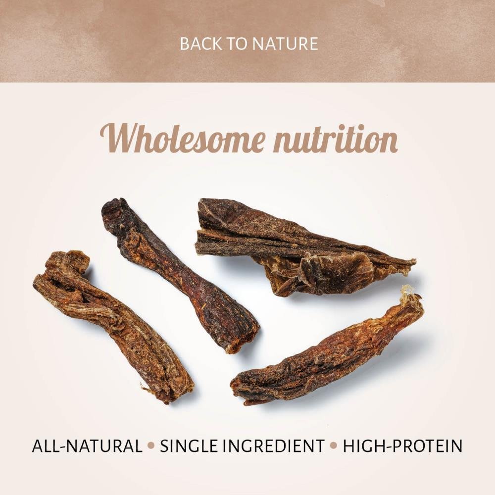 Consigliato come snack per cani. Snack naturale per la masticazione, le dimensioni e il peso posso variare. Vizialo responsabilmente: scegli gli snack, come consigliato, in base alla taglia del tuo cane. Spezzare in piccoli pezzi per cani piccoli. Per la sicurezza dei tuoi animali, controlla il tuo cane mentre mastica o mangia lo snack. Rimuovi i piccoli pezzi o quelli frantumati per evitare il pericolo di soffocamento. Tieni acqua fresca sempre a portata di mano. Tenere in luogo fresco, pulito e asciutto. Questo prodotto è da considerarsi come snack e non bisogna considerarlo come un pasto completo. Non è cibo per uomini.