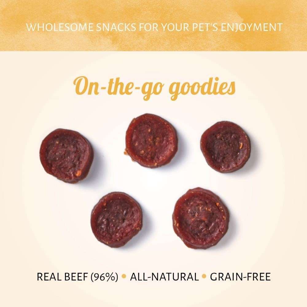 Fai stare il tuo cane sempre meglio, dagli uno spuntino salutare da mangiare simile a quello presente in natura del quale si nutrivano i suoi antenati. I WILD al gusto di manzo sono bocconcini selvatici per cani realizzati con della vera carne bovina e non contengono cereali. Ogni bocconcino è composto per il 96% da carne bovina.