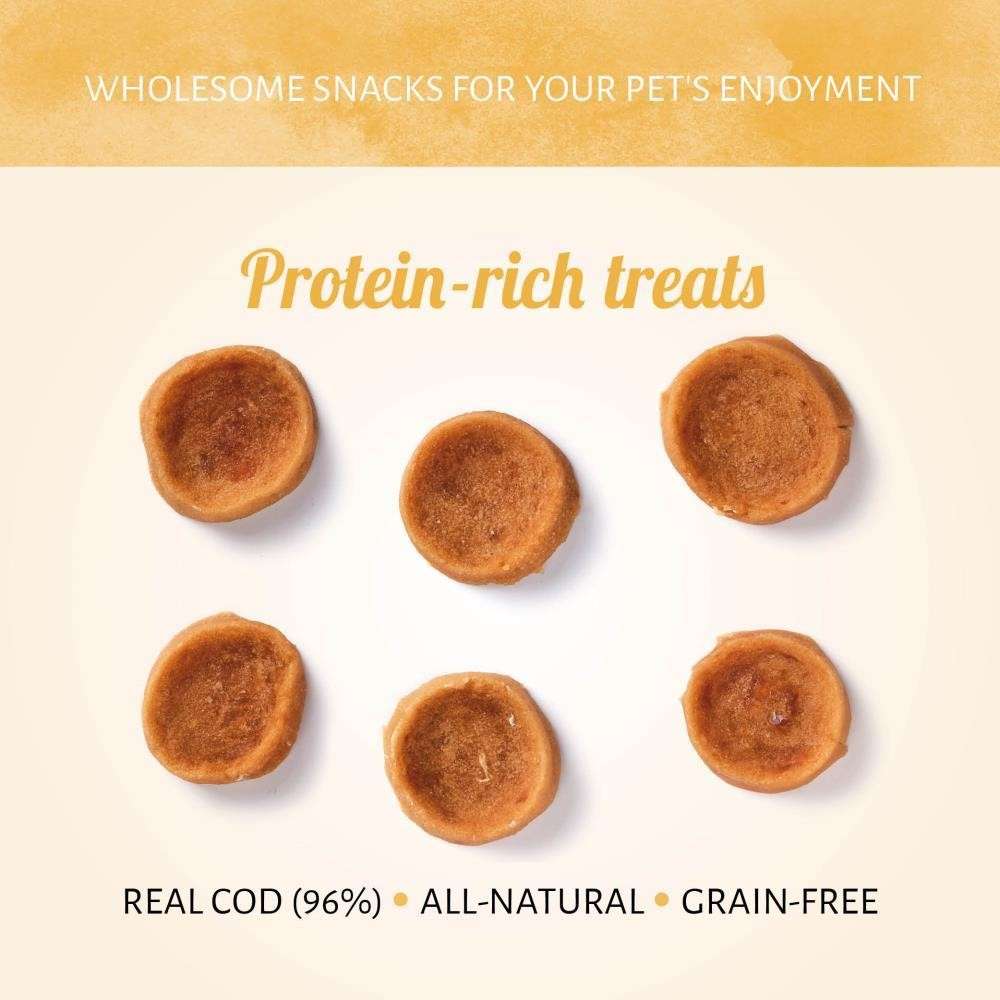 Il tuo cane sbaverà dalla gioia con i WILD al gusto di merluzzo, i nostri bocconcini al gusto di merluzzo selvatico. Ogni bocconcino gustoso può essere dato come ricompensa dall’elevato contenuto proteico. Realizzato con del vero pesce come ingrediente principale, questo snack può essere servito insieme allo spuntino preferito del tuo cane o da solo.
